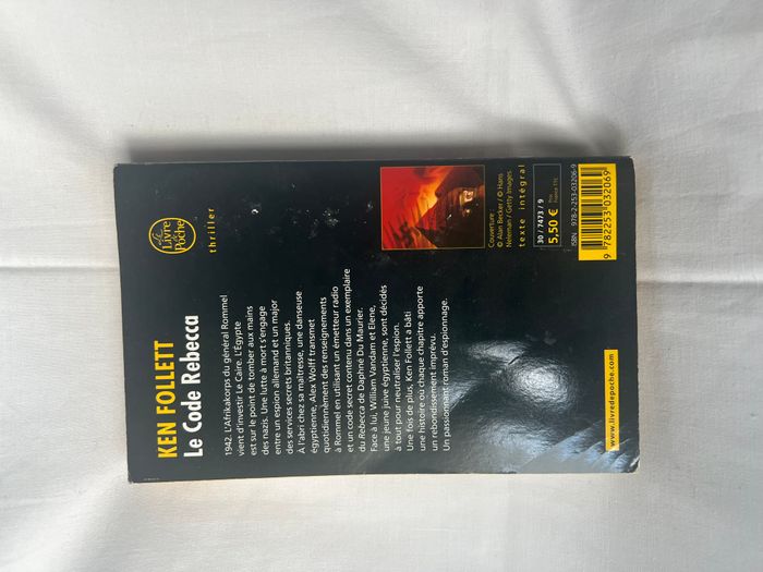 Livre - Le code Rebecca - Ken Follett - Le livre de poche 1942. Rommel a pris Tobrouk et l’Égypte est sur le point de tomber aux mains des nazis. Dans le grouillement du Caire où le destin vacille encore, une lutte à mort s’engage entre un espion allemand qui, à l’abri chez sa maîtresse, une voluptueuse danseuse égyptienne, transmet chaque jour des renseignements à Rommel en utilisant un émetteur radio et un exemplaire de Rebecca de Daphné Du Maurier contenant la clef du code. Un major des services secrets britanniques, lui a pour aide Elen, une jeune juive égyptienne prête à utiliser sa beauté pour combattre les nazis. Une fois de plus, Ken Follett a bâti une histoire où chaque chapitre apporte un rebondissement imprévu. Les ruelles inquiétantes du Caire, les sables brûlants du désert, les boîtes où se nouent intrigues et complots, et le Nil, dont les eaux boueuses emportent plus d’un secret, voilà le décor de ce passionnant roman, par l’auteur de L’Arme à l’œil et de Triangle.
