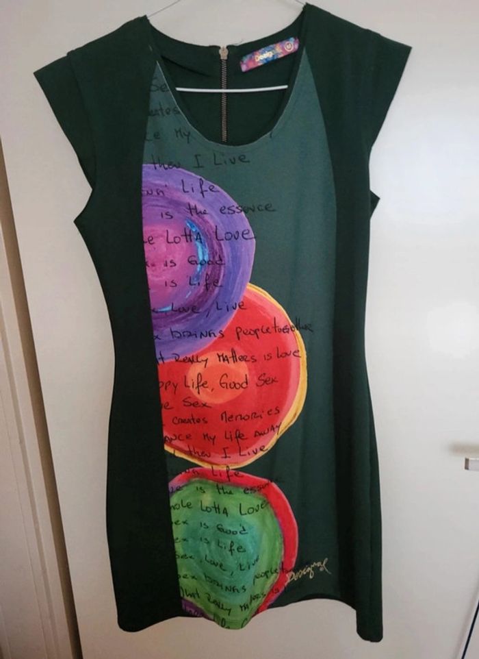 Belle robe verte Desigual taille M. Très bon état. Manches courtes. Tirette arrière. Je la vends au prix de 25 euros. #TailleM38marine