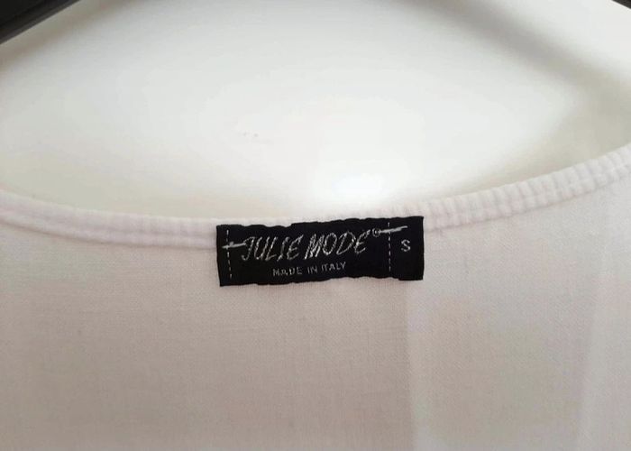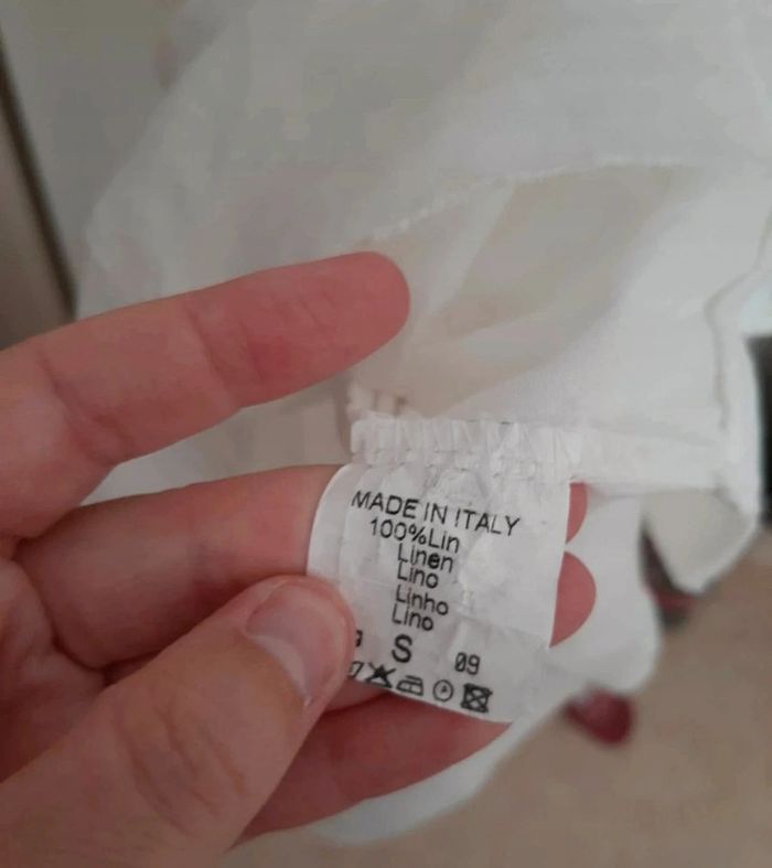 Robe blanche avec morceaux de "broderies" et détails très jolis. Taille S, en très bon état. Matière qualitative 100% lin. Petit décolleté. Je la vends au prix de 18 euros. #TailleS36marine