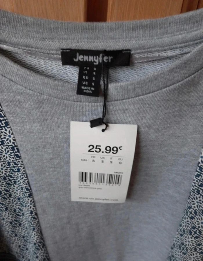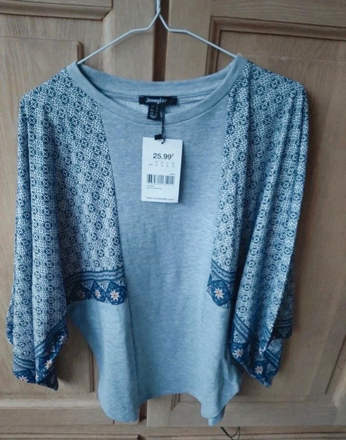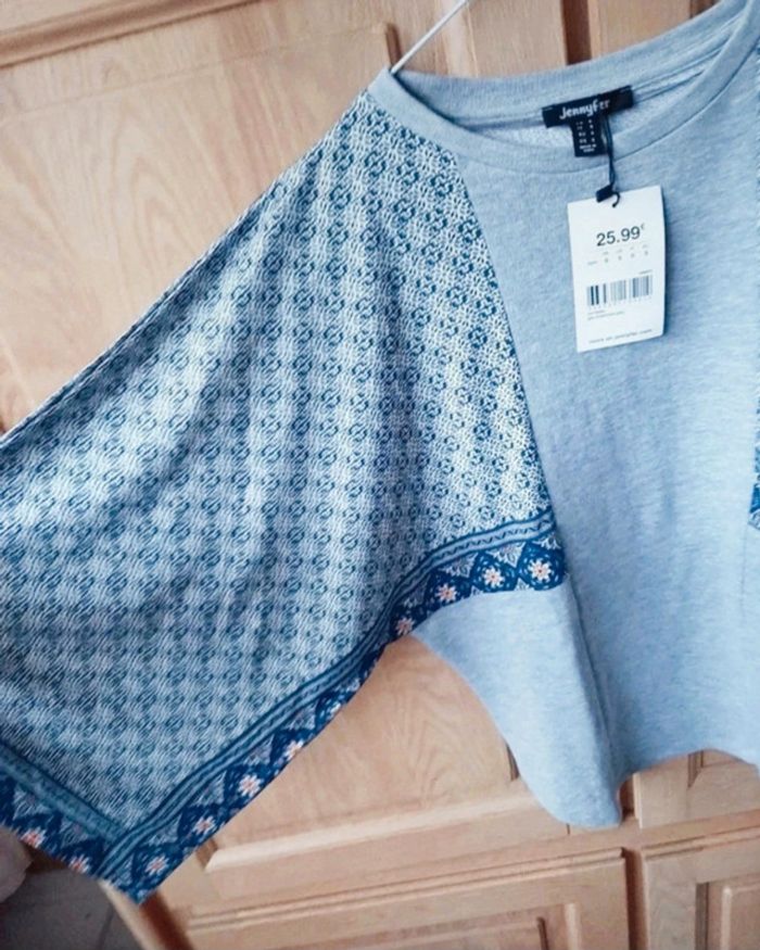 Magnifique haut matière pull sauf les manches douces et légères. Manches chauve-souris. Neuf. Jennyfer taille 36. Gris avec du bleu. Je le vends au prix de 15 euros. #TailleS36marine