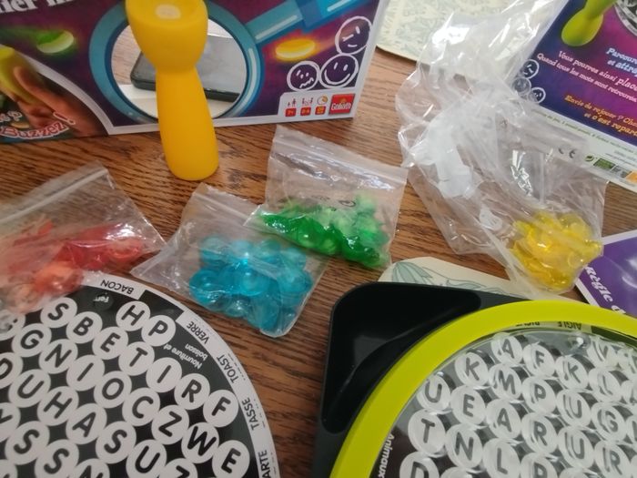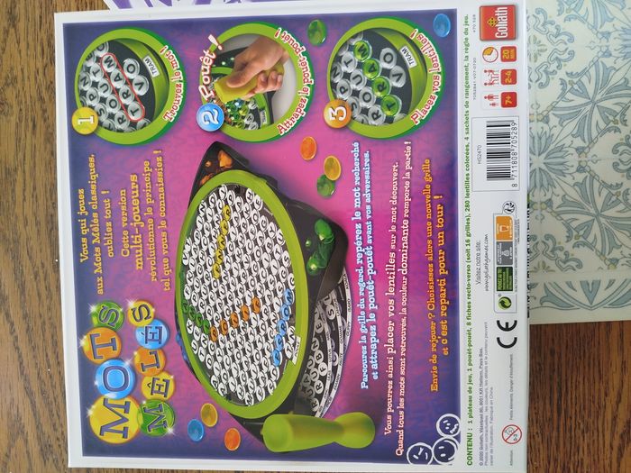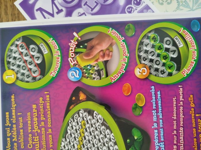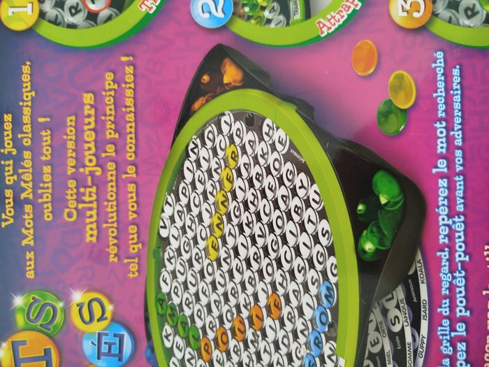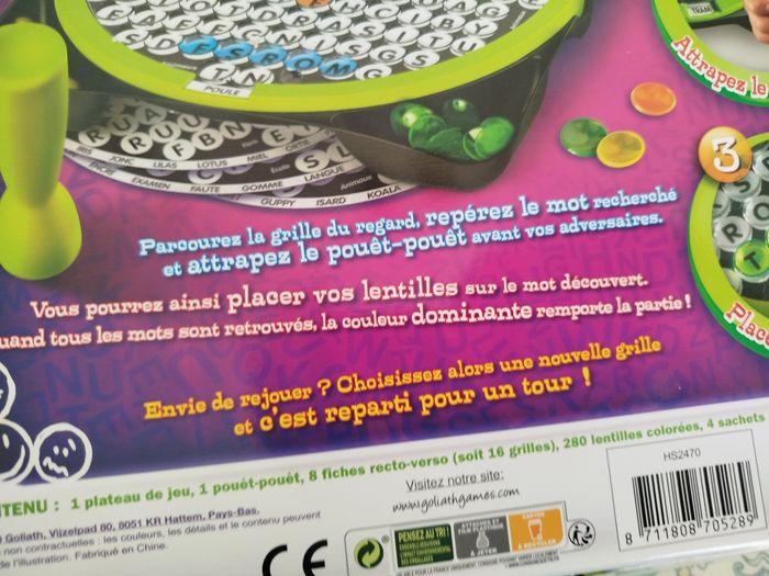 Mots mêlés qui aura le dernier mot ?? Vous qui jouez au mots mêlés classiques, oubliez tout ! Cette version multijoueur révolutionne le principe tel que vous le connaissez.. Parcourez la grille du regard, repérer les mots recherchés et attraper le pouet pouet avant vos adversaires.. Vous pourrez ainsi passer vos lentilles sur le mot découvert quand tous les mots sont retrouvés, la couleur dominante remporte la partie ! Envie de rejouer ! Choisissez alors une nouvelle grille et c'est reparti pour un tour ! Marque : Goliath Âge : 7ans + Nbrs de joueurs : 2-4 État : Neuf