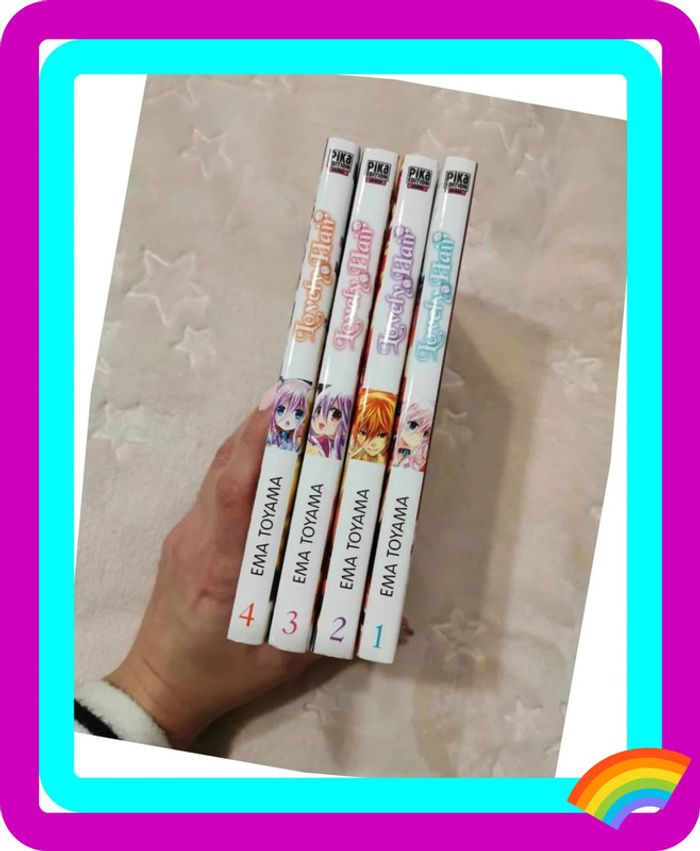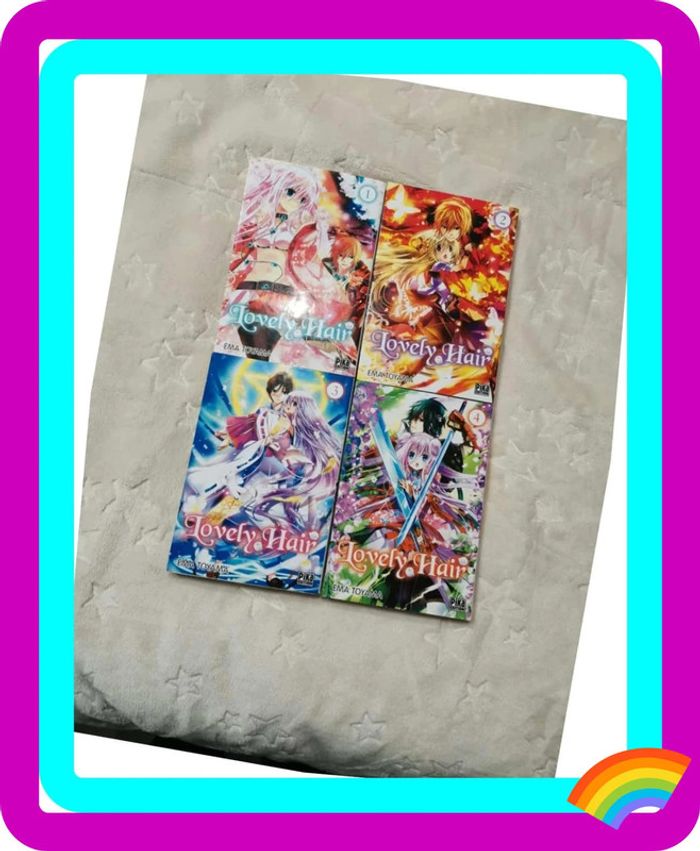 Tomes 1 a 4 du manga lovely hair en très bon état. Les jaquettes sont très légèrement abîmées mais peu visible. Le tome 1 a le coin légèrement corné. Voir photos. #sophiebouetlivres #manga #mangashojo #ematoyama #pikaedition #pika