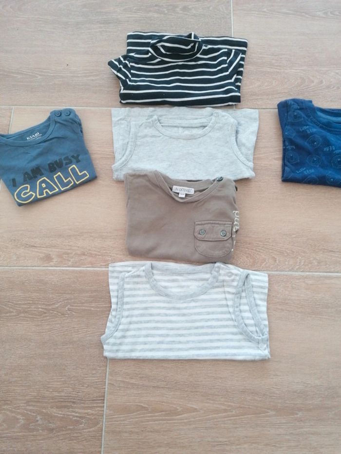 1 maillot 6 mois kiabi 1 sous pull 9 mois kiabi 1 maillot courtes manches in extenso 71 cm 2 maillots Marcel 9 mois TEX collection 1maillot longues manches lupilu 6 à 12 mois 6 vetements en tous #chintchintgarcon6mois #chintchintgarcon9mois