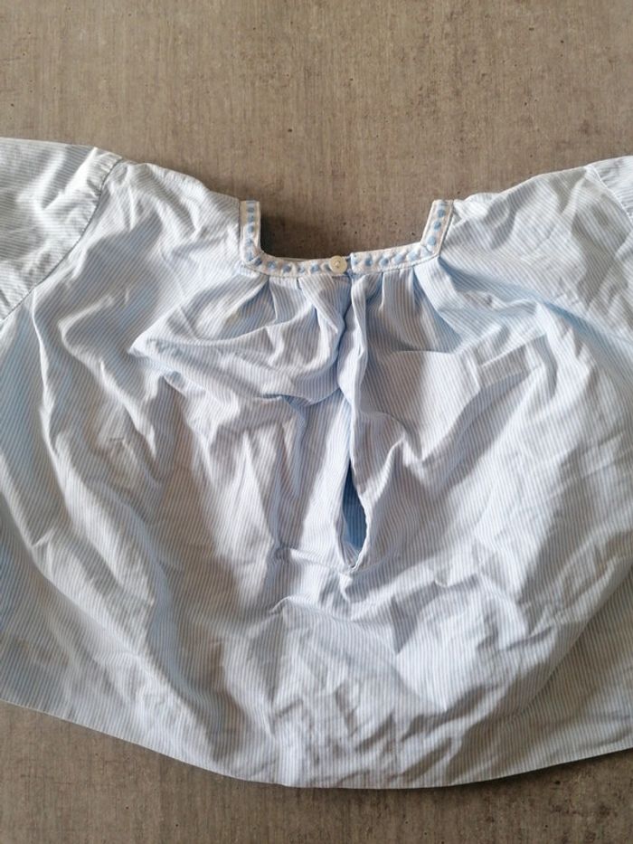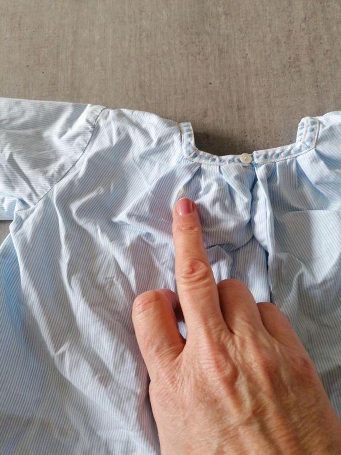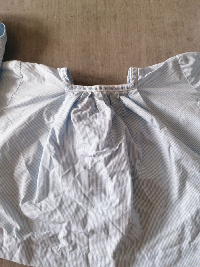 Chemise fille 12.a 18 mois bleu rayures blanches une toute petite tache derrière pas très loins du bouton voir dernière photo je met le doigt à côté elle se voit à peine #chintchintfille12mois