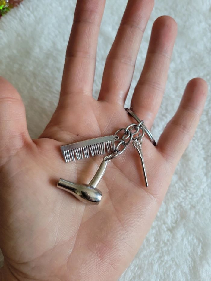 Porte clefs du couffeur. 1 peigne, 1 sèche cheveux et ciseaux Neuf. # modèles dans mon dressing. Neuf. Envoi sous 24h_48h Lot possible...