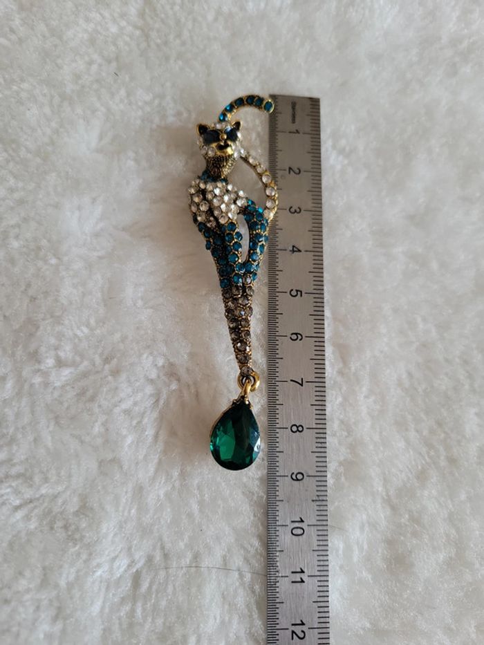 Broche chat multicolore et pampille verte - photo numéro 5