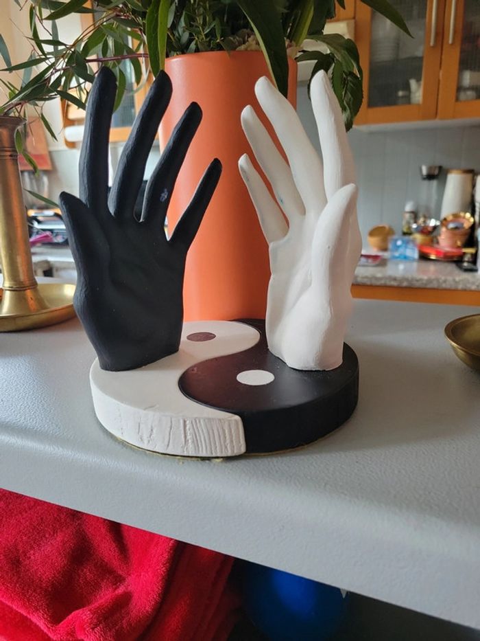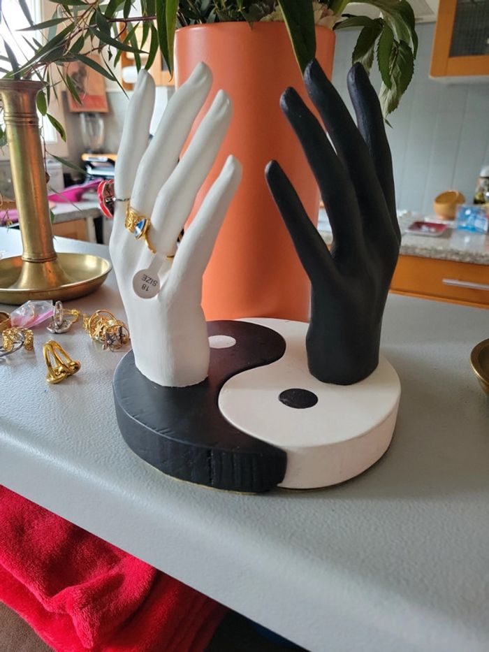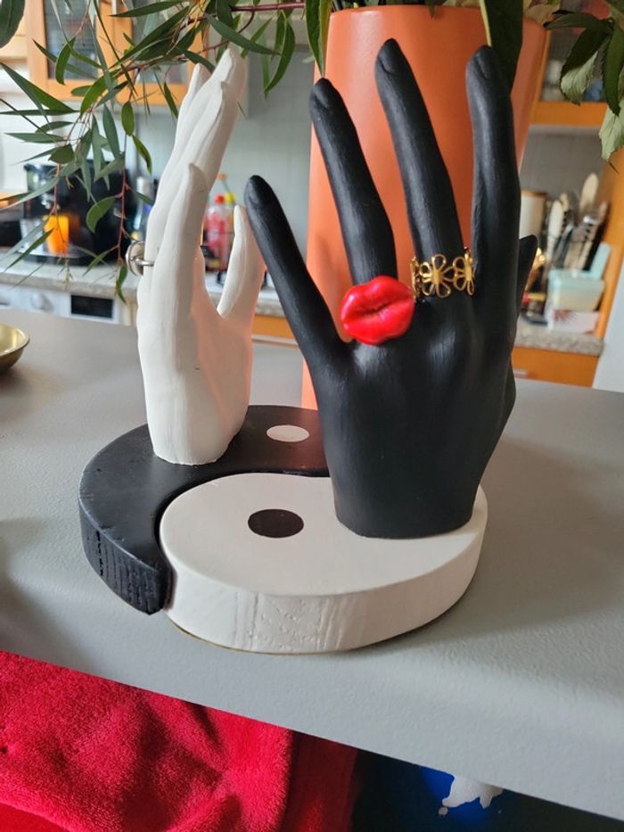 Fais main. Presentoire original pour des bagues ou tout simplement en objet décoratif. Léger. Original. Modèle unique. Ying yang et la notre terre. Neuf. Lot possible, sur demande, avec d autres articles 👜🎃🎀🎁👝 de mon dressing 🙂 👗👠👜, ainsi vous économiserez sur les frais € de livraison....💪💪💪💪