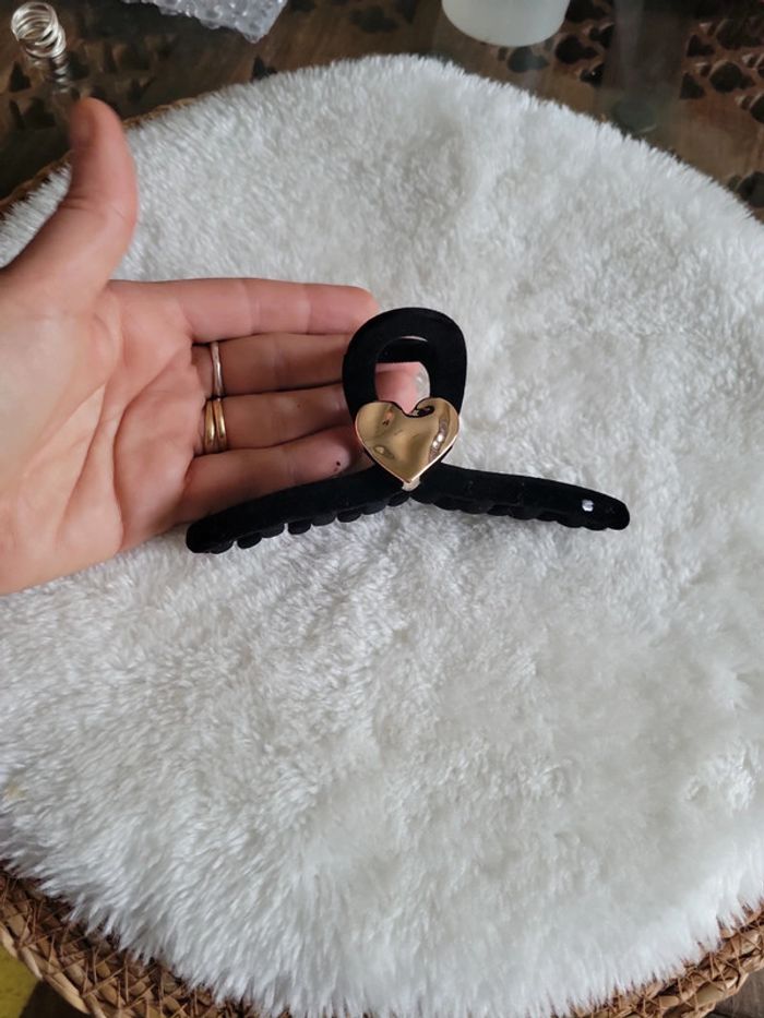 Magnifique pince en velour noir et cœur doré. Grand maintient Neuve, jamais portée Bonne tenue des cheveux. Originale D autres modèles dispo dans mon dressing. Envoi rapide et soigné