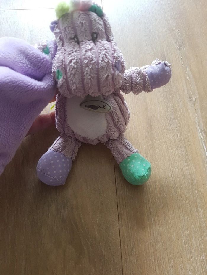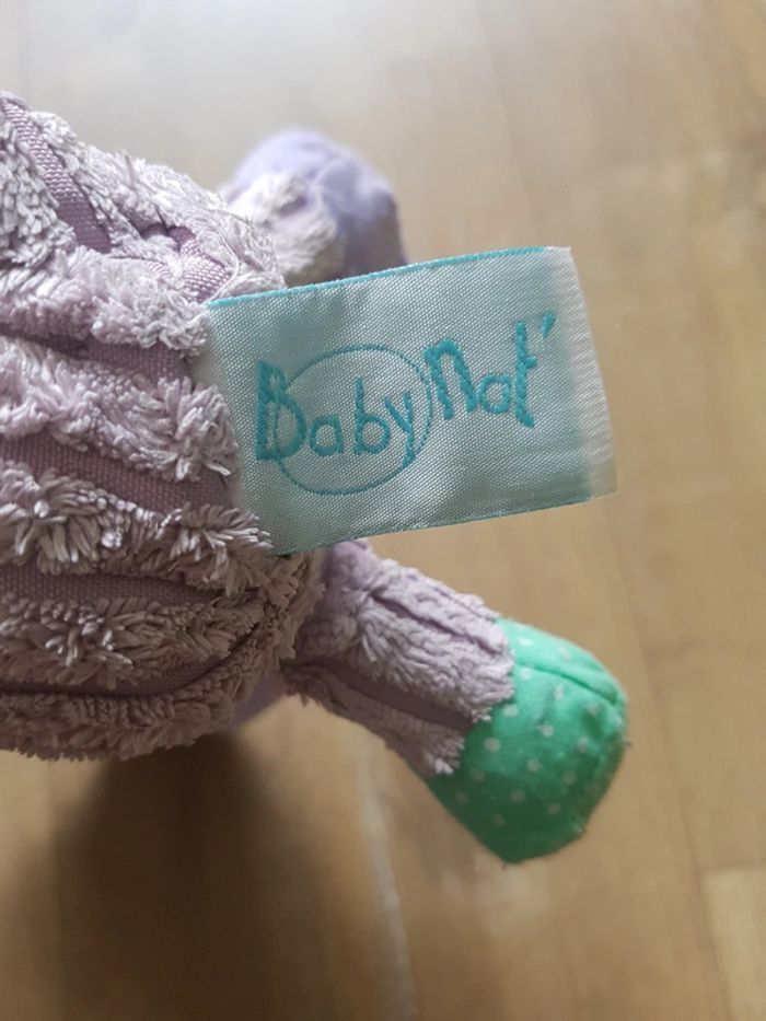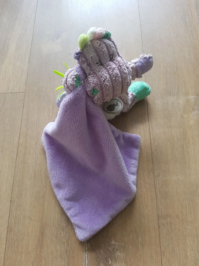 Doudou BabyNat' hippopotame violet Petite tâche au revers du carré, voit dernière photo