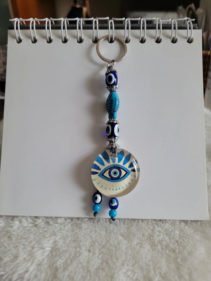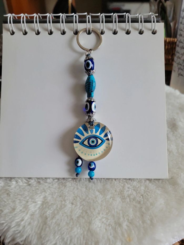 Porte clefs 🔑 oeil / bijou de sac à 👜 Neuf L’œil de protection, également connu sous le nom d'œil turc ou de Nazar, est un symbole utilisé depuis des siècles pour protéger contre le mauvais œil et le malheur. Envoi sous 24h_48h.