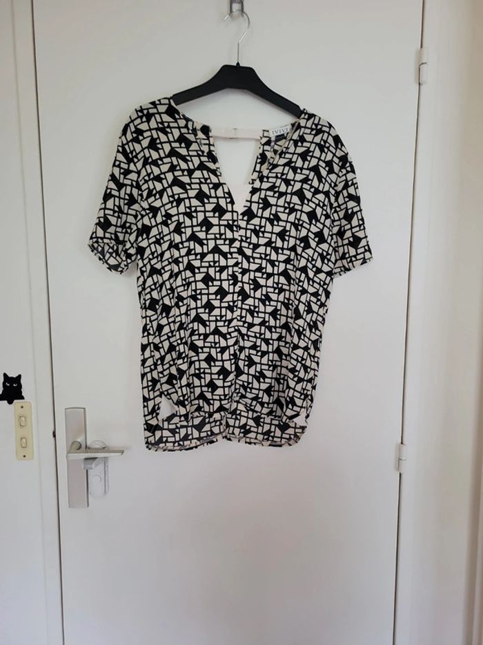 Haut vintage noir et beige geometrique - photo numéro 2