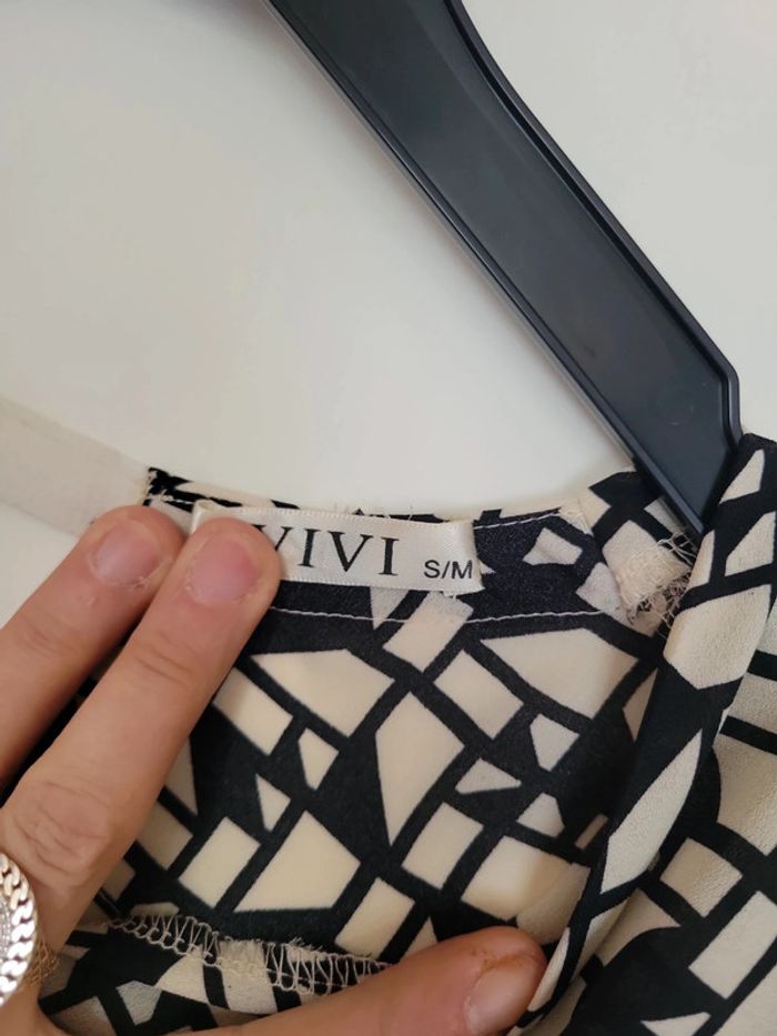 Haut vintage noir et beige geometrique - photo numéro 4