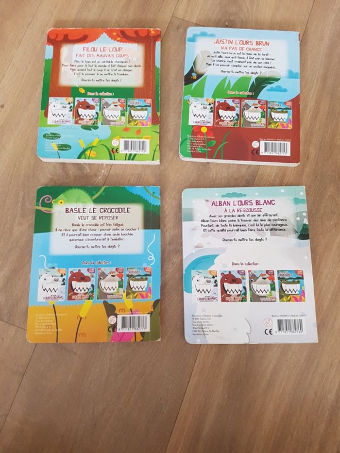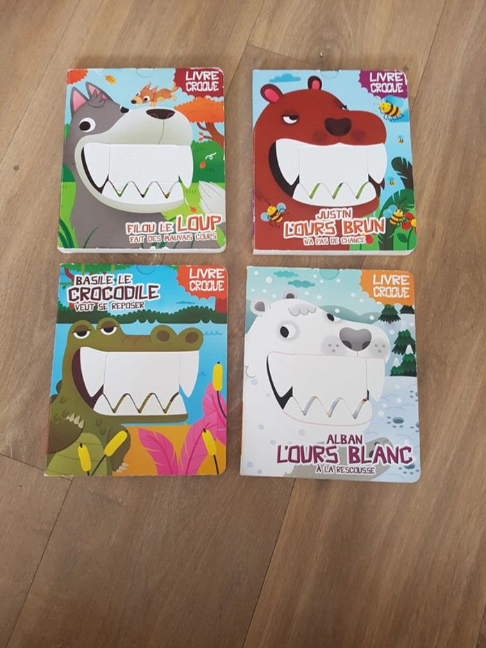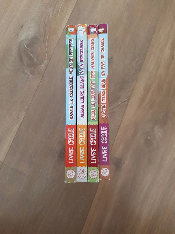 Collection de 4 livres Croque - Bazil le crocodile - Alban l'ours blanc - Filou le loup - Justin l'ours brun Ont été manipulés, présentent de légères traces d'usure.