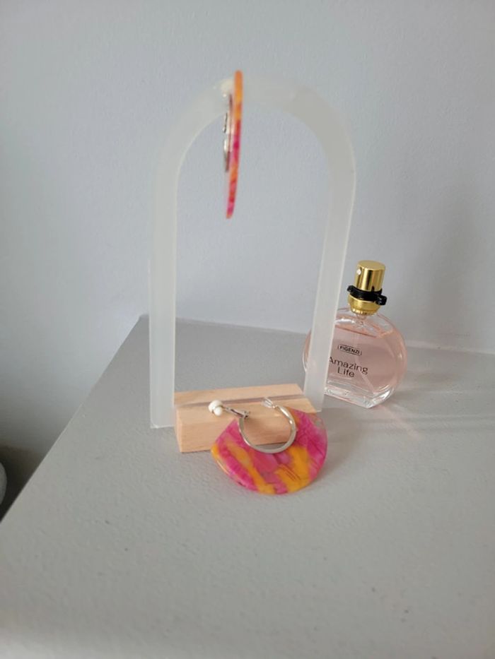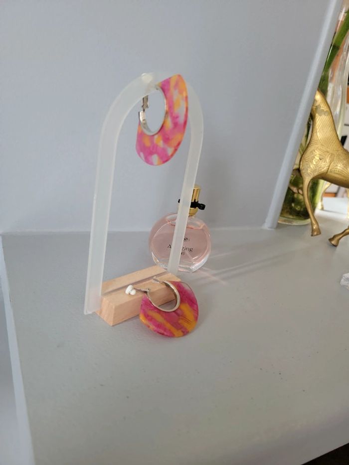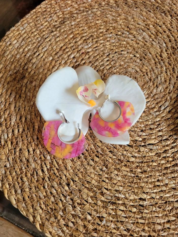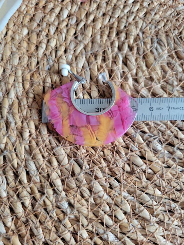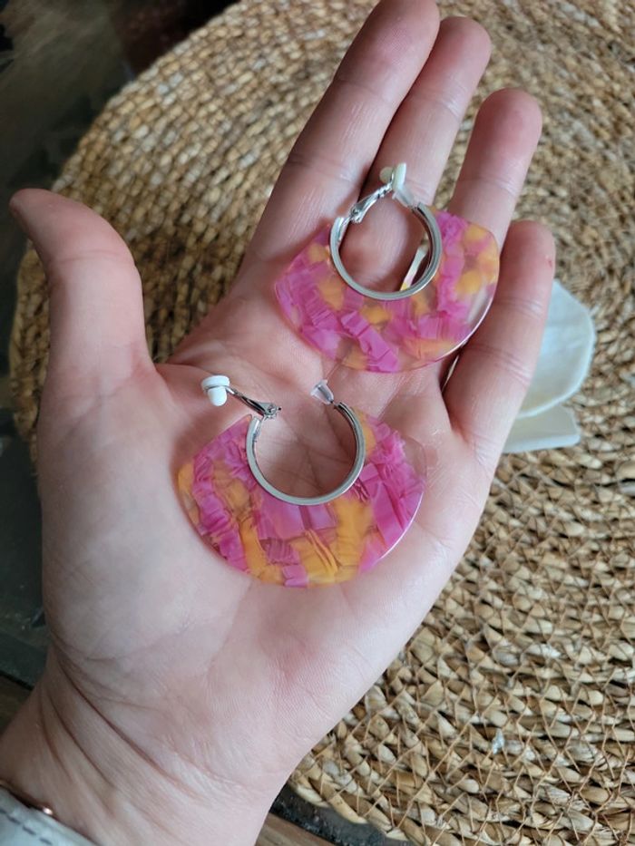 Clips acier silver créoles rose et orange - photo numéro 9