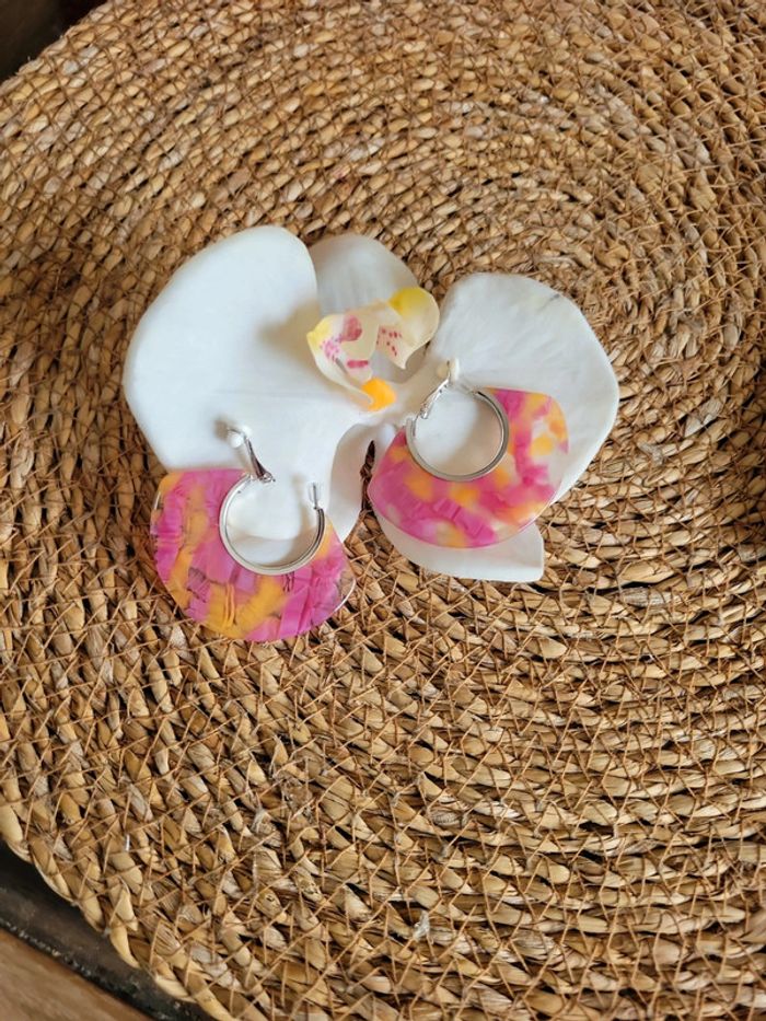 Clips acier silver créoles rose et orange - photo numéro 7