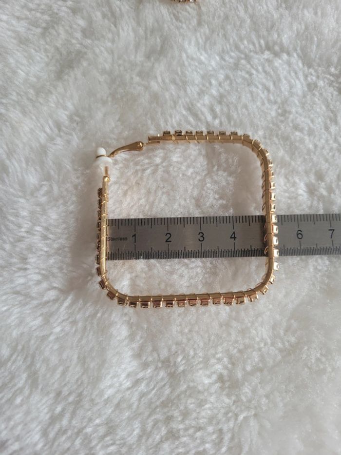Clips créoles carré acier et zirconiums - photo numéro 8
