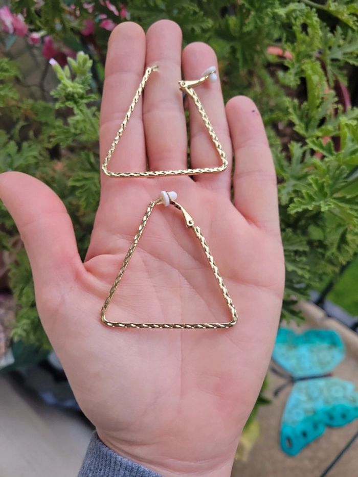 Créoles clips triangle acier gold ciselés - photo numéro 5