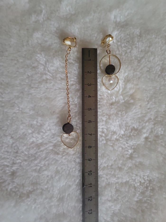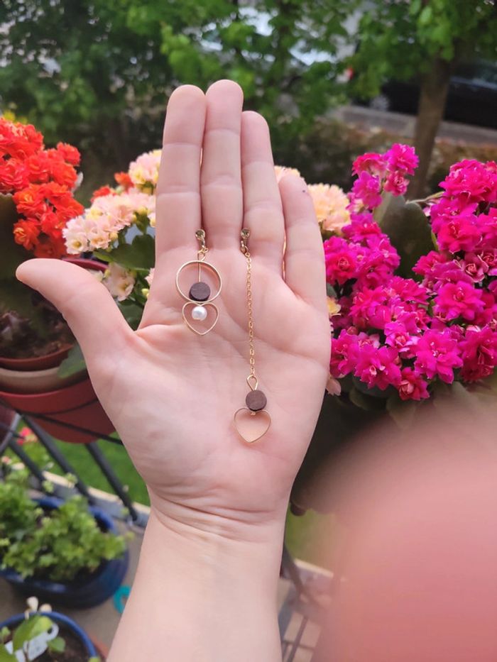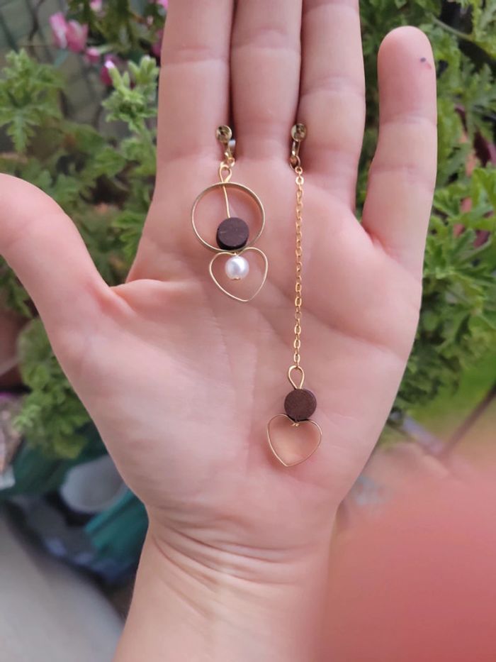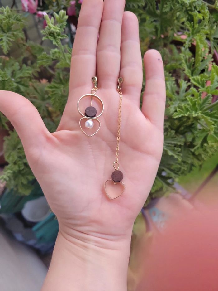 Clips asymetriques coeur bois et perles - photo numéro 4