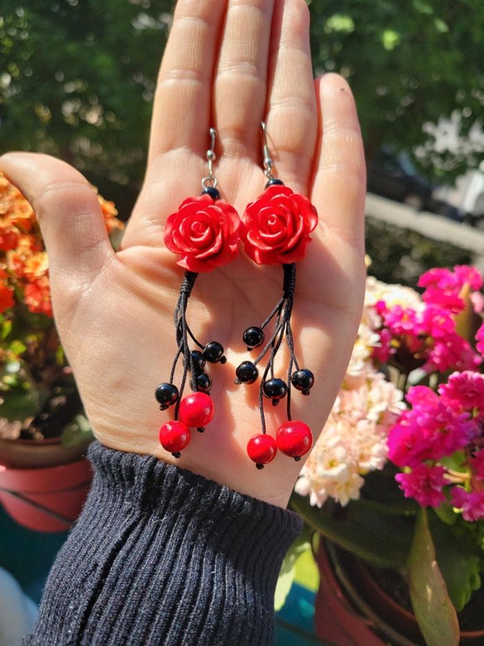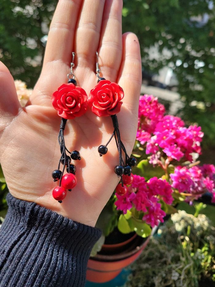 Boucles d oreilles roses rouges - photo numéro 3