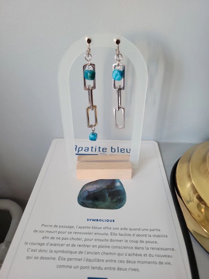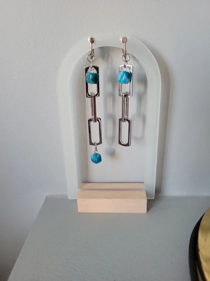 Clips asymétrique acier et apatite bleue - photo numéro 5