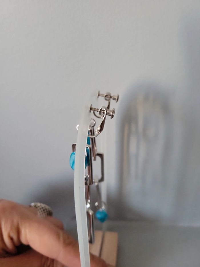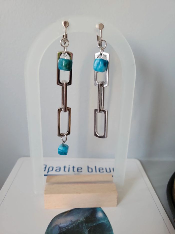 Clips d oreilles 👂 Acier inoxydable. Hyppoallergenique. Pour oreilles non percées (ou percées 😉👍😊) Fais main. Modèle unique. Grand choix de clips dans mon dressing. Apatite bleue : Excellente pierre de communication, aide à évacuer les non-dits accumulés, apaise. Aide pour les regimes amaigrissants. Lot possible sur demande avec # articles de mon dressing. Envoi sous 24h_48h.
