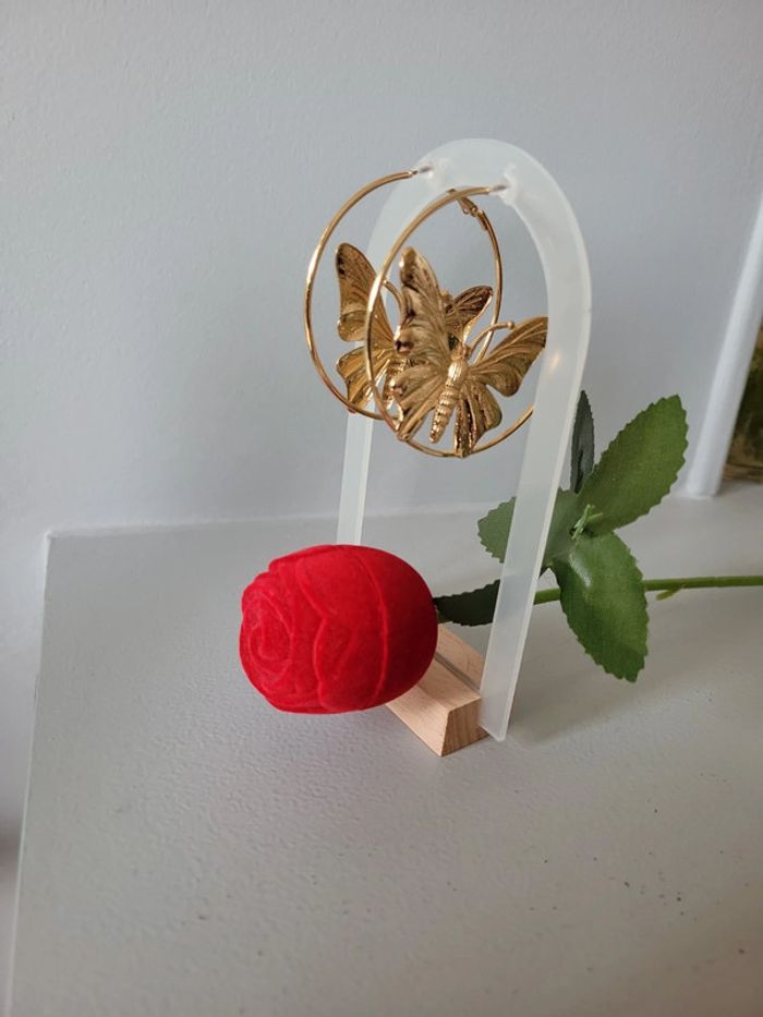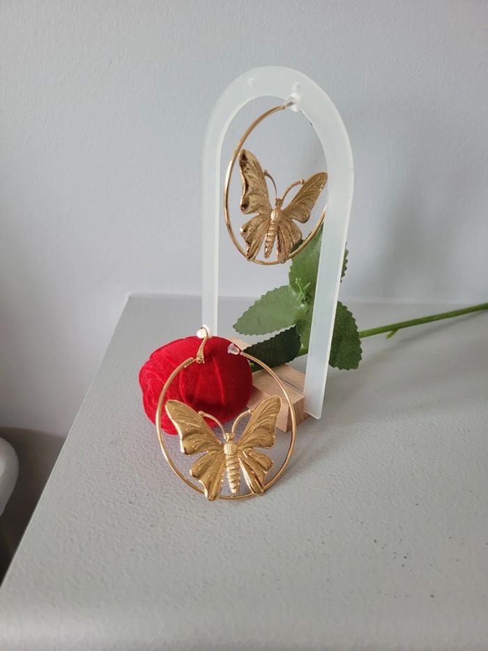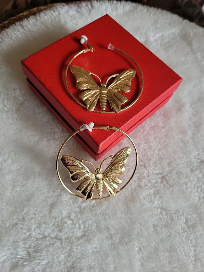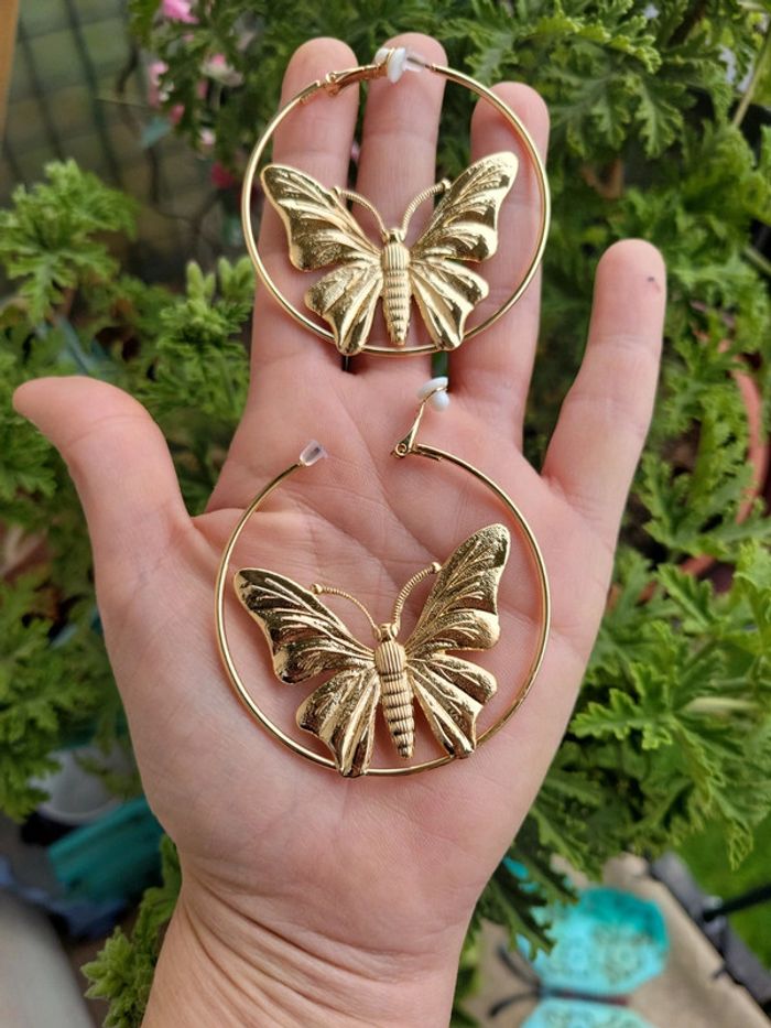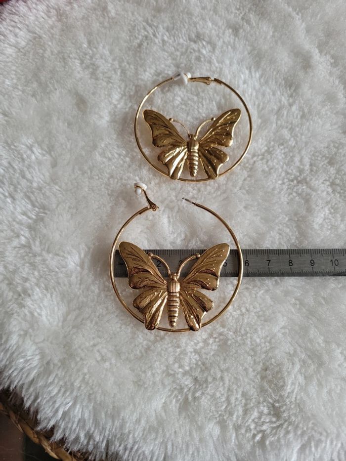 Clips creoles acier gold papillon. 6cm - photo numéro 6