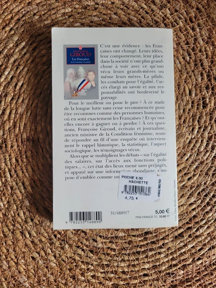 C'est une évidence : les Françaises ont changé. Leurs idées, leur comportement, leur place dans la société n'ont plus grand-chose à voir avec ce qu'ont vécu leurs grands-mères ou même leurs mères. La pilule, les combats pour l'égalité, l'accès élargi au savoir et aux responsabilités ont bouleversé le paysage. Pour le meilleur ou pour le pire ? A ce stade de la longue lutte sans cesse recommencée pour être reconnues comme des personnes humaines, où en sont exactement les Françaises ? Et qu'ont-elles encore à gagner ou à perdre ? A ces questions, Françoise Giroud, écrivain et journaliste, ancien ministre de la Condition féminine, tente de répondre au fil d'une enquête où interviennent le rappel historique, la statistique, l'aspect sociologique, les témoignages vécus. Alors que se multiplient les débats - sur l'égalité des salaires, sur l'accès aux fonctions politiques... -, cet état des lieux mené sans préjugés, et appuyé sur une information abondante, s'impose d'emblée comme un indispensable. Tres bon état Lot possible, sur demande, avec d autres articles 👜🎃🎀🎁👝 de mon dressing 🙂 👗👠👜, ainsi vous économiserez sur les frais € de livraison....💪💪💪💪