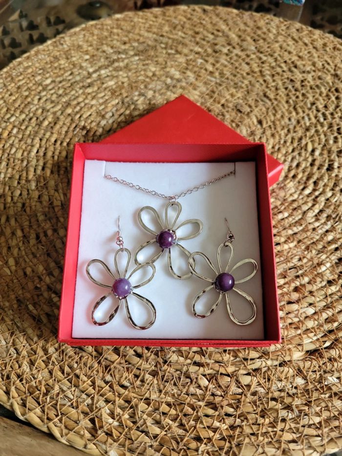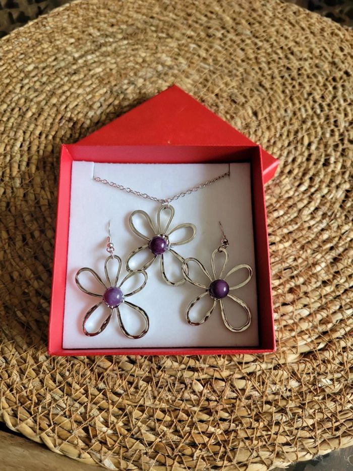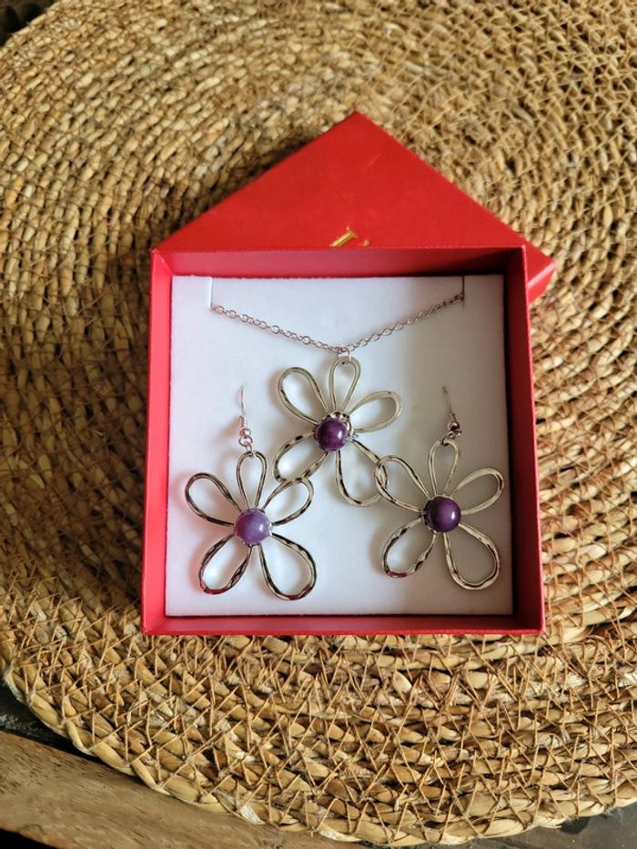 Parure fleur 🌼acier et pierres angelites - photo numéro 1