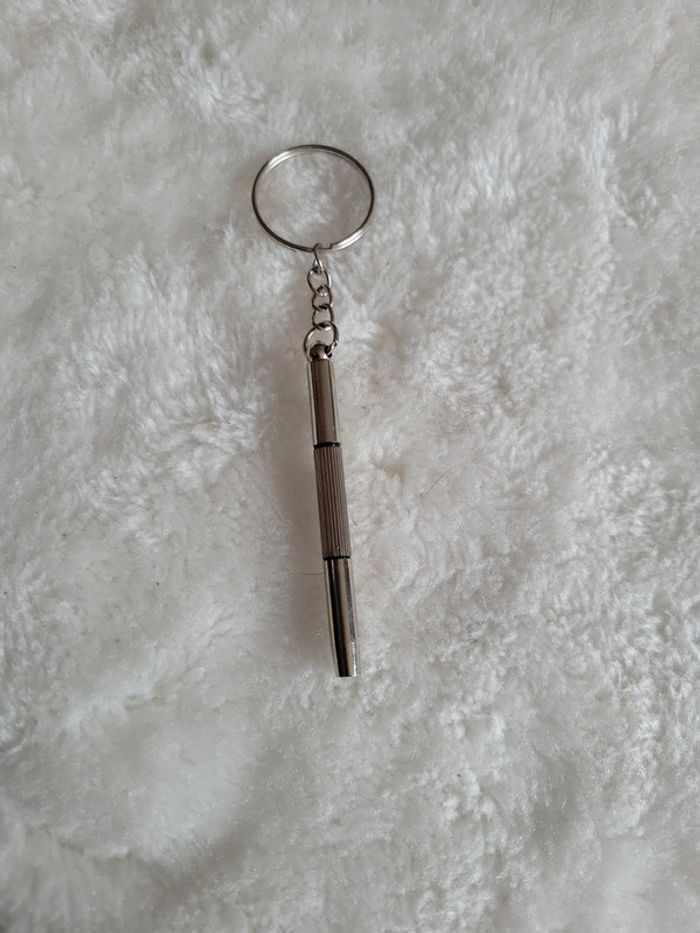Porte clefs en acier inoxydable silver. 2 embours, idéal pour " resserrer" les branche de lunettes et vis tel portable. Bien utile dans la vie quotienne.... A acrroche a votre porte clefs, il vous dépannera bien...... Neuf. Envoi rapide et soigné 24h_48h Lot possible sur demande