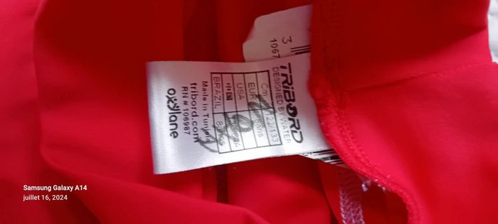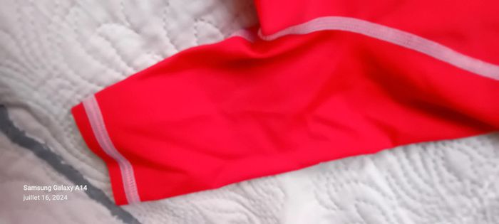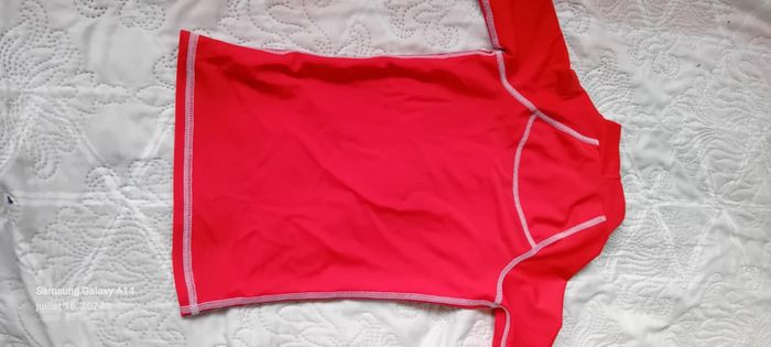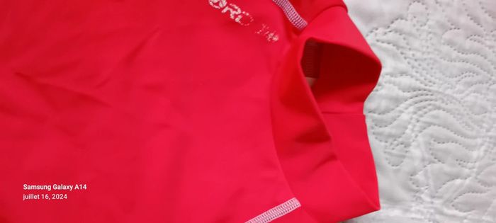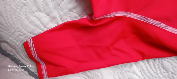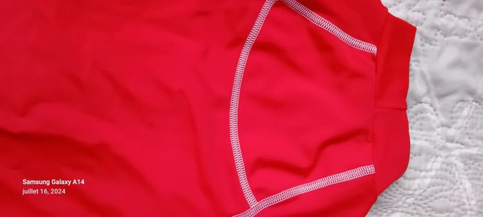 Maillot anti uv manches 3/4 en polyamide et elastanne longueur 48 cm largeur aisselles à aisselles 29 cm longueur manches 13 cm ideal pour la plage et les activités nautiques porté quelques fois en très bon état ⚠️ juste le flocage tribord un peu effacé et les noms sur les étiquettes qui peuvent être effacés au blanco ou découpées #midole #midoleenfant #midolegarçon8ans #midolefille8ans #midoleete #maillotantiuv8ans #tribord #plage #activitesnautiques #antiuv #décathlon #rouge