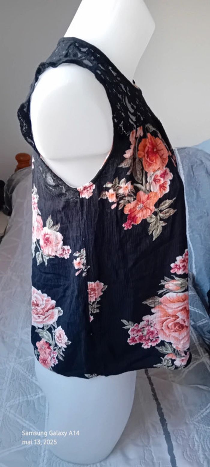 Débardeur court bimatiere motif floral avec dentelle noir femme 38 only - photo numéro 17