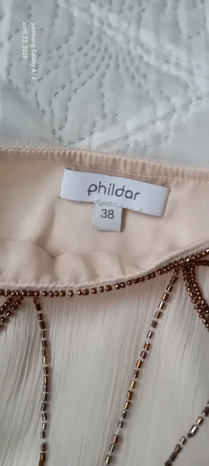Tunique débardeur effet plissé avec sequins dorés beige femme 38 phildar