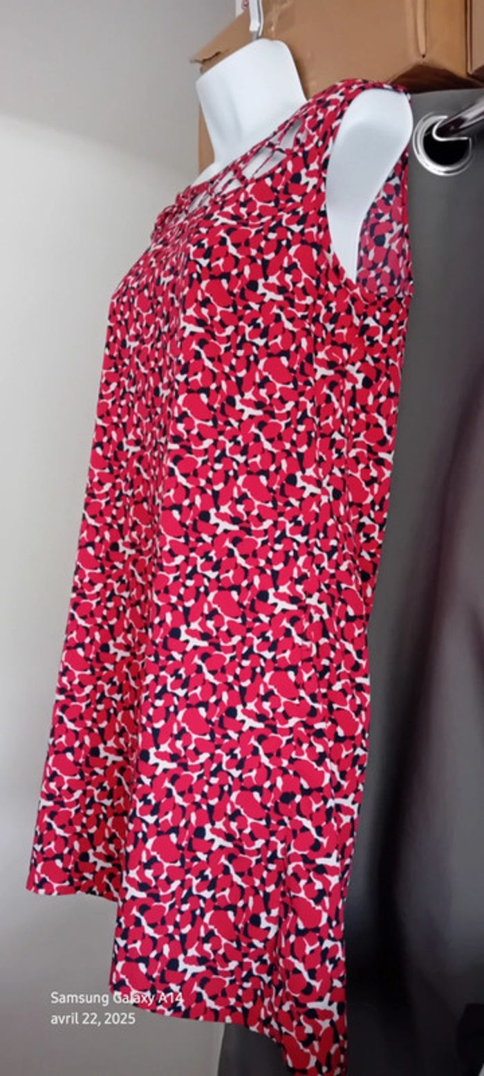 Robe tunique estivale imprimé tacheté rouge marine femme 40 in extenso - photo numéro 3