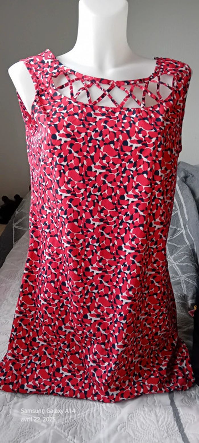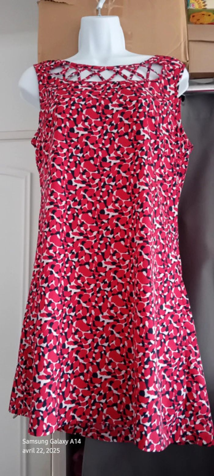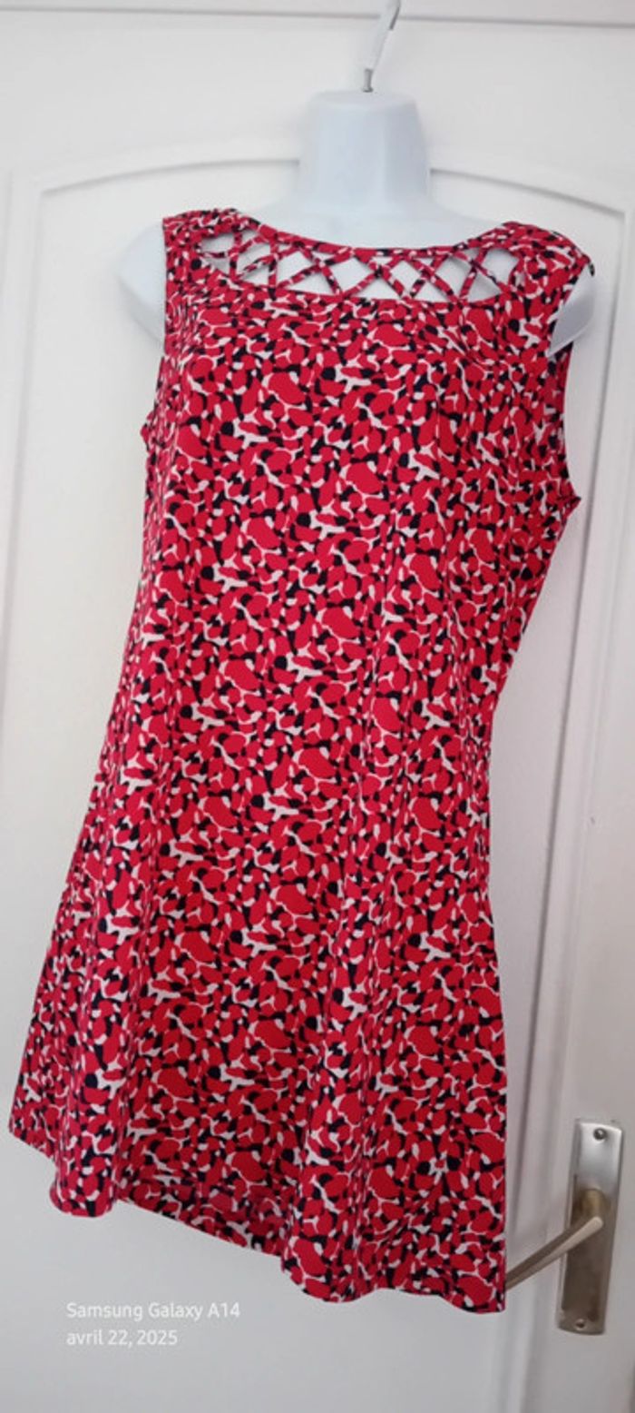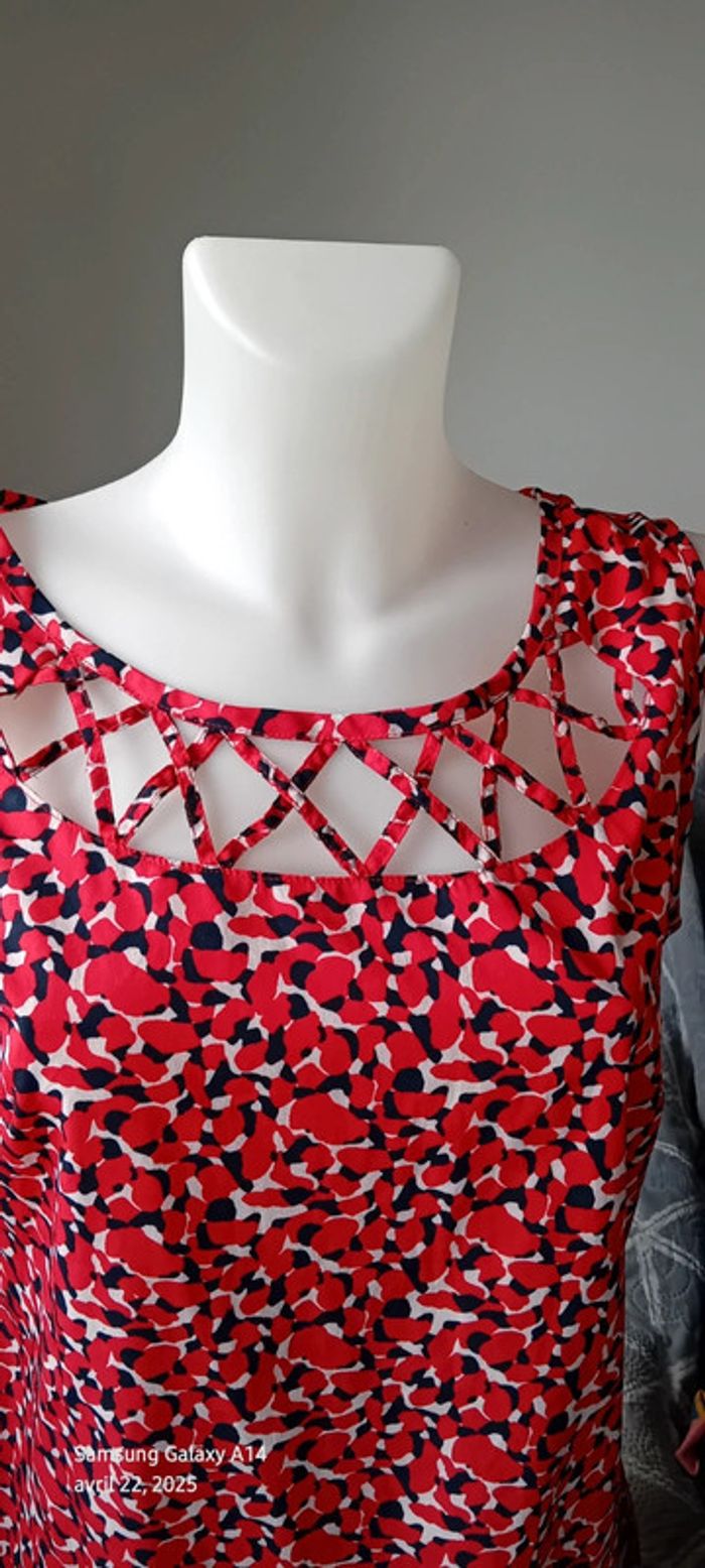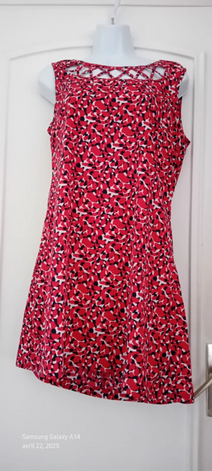 Robe tunique estivale imprimé tacheté rouge marine femme 40 in extenso - photo numéro 14