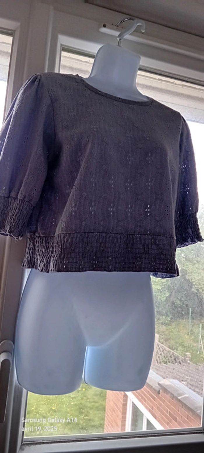 Haut court ajouré motif floral avec smocks lavande femme M pull & bear