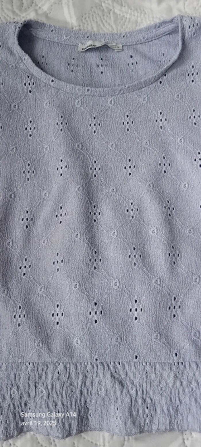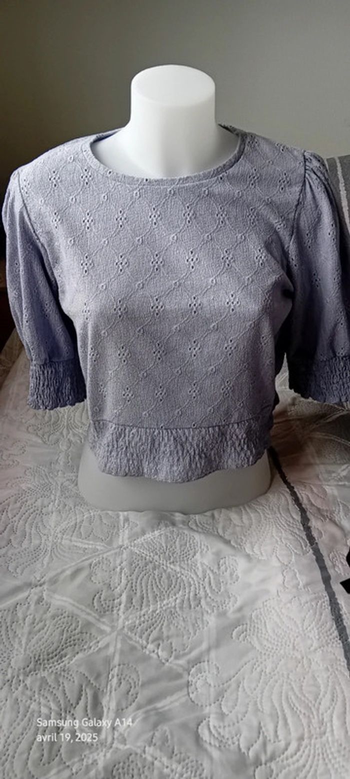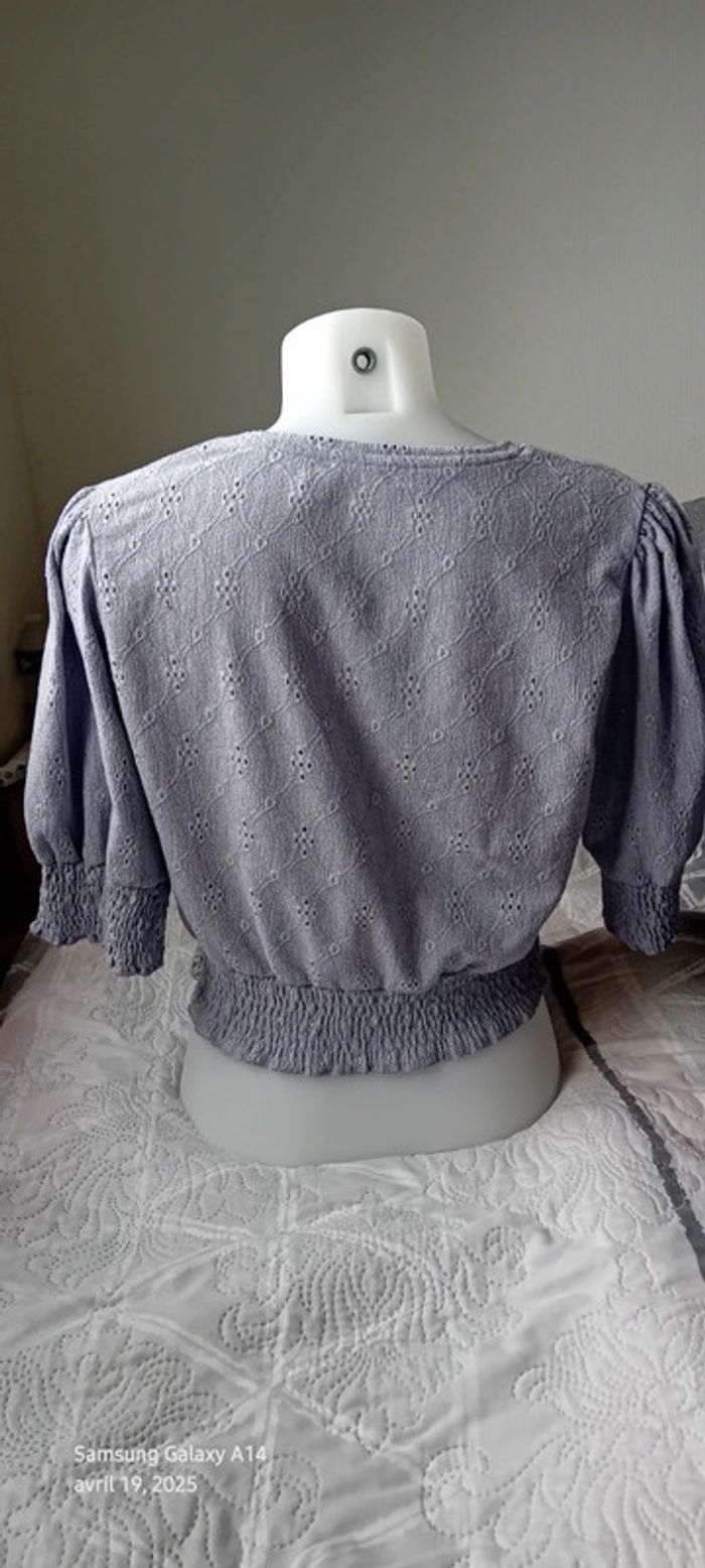 Haut court ajouré motif floral avec smocks  lavande femme M pull & bear - photo numéro 2