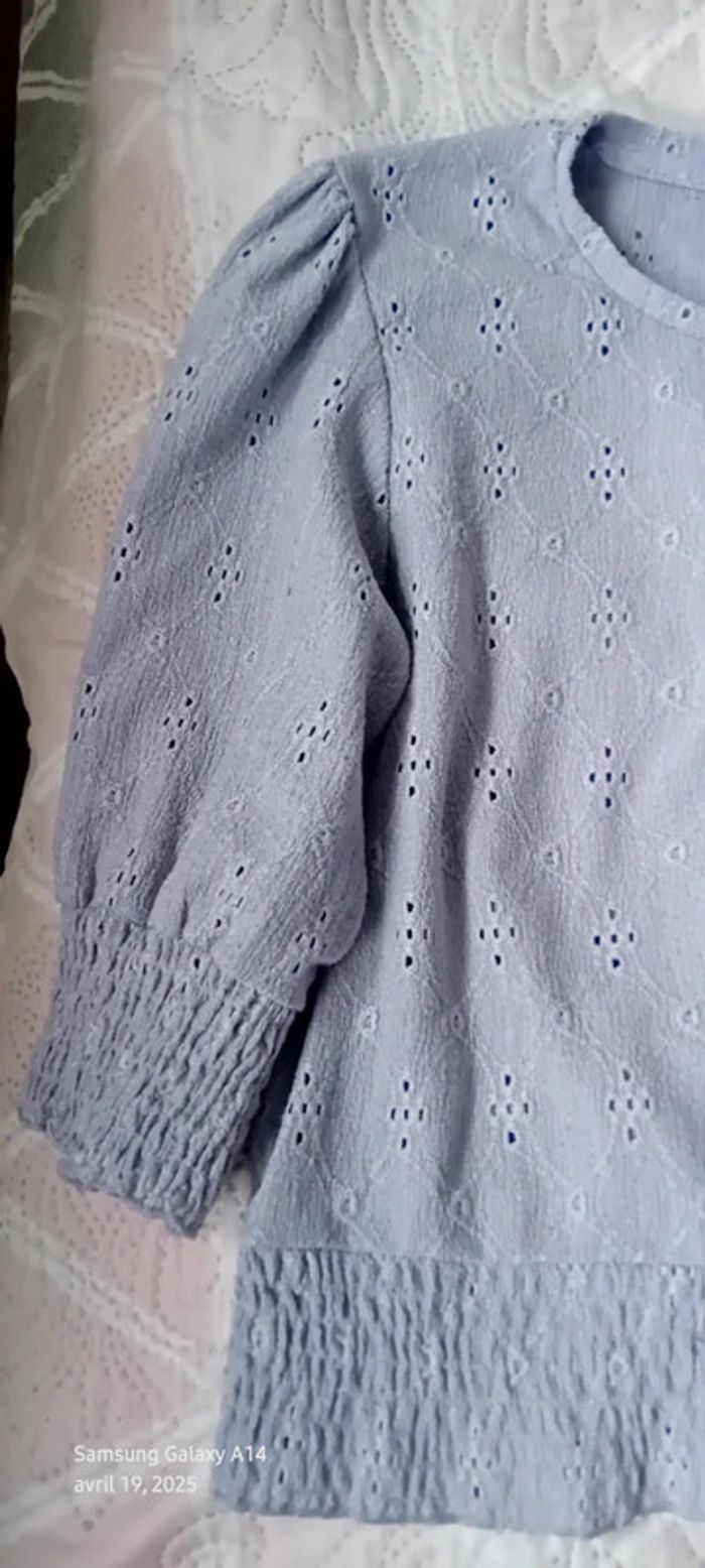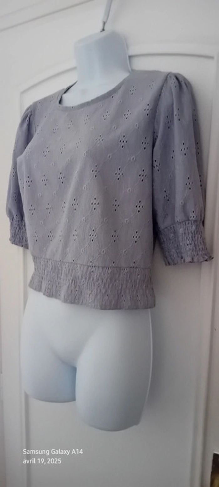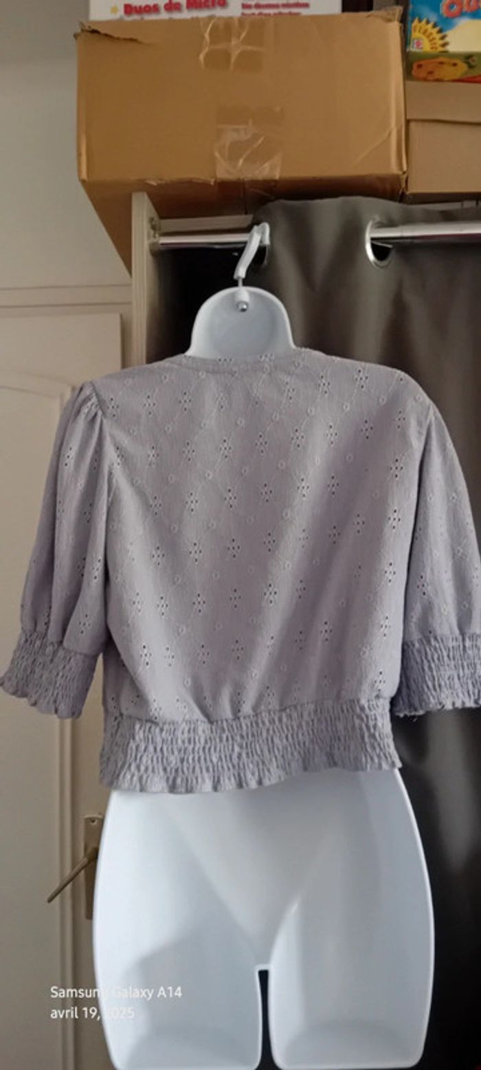 Haut court en polyester et elastanne matière fluide effet dentelle ajourée motif floral manches 3/4 élastique smock aux manches et en bas couleur lavande longueur 46 cm largeur aisselles à aisselles 50 cm largeur épaules 36 cm longueur manches 33 cm marque pull & bear juste porté une ou deux fois en très bon état comme neuf #midole #midolefemme #midolefemme38 #femme38 #pullandbear #hautcourtpullandbear #hautmailleajouree #lavande #élastiquesmock