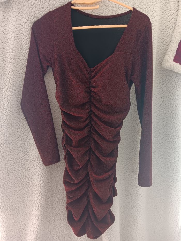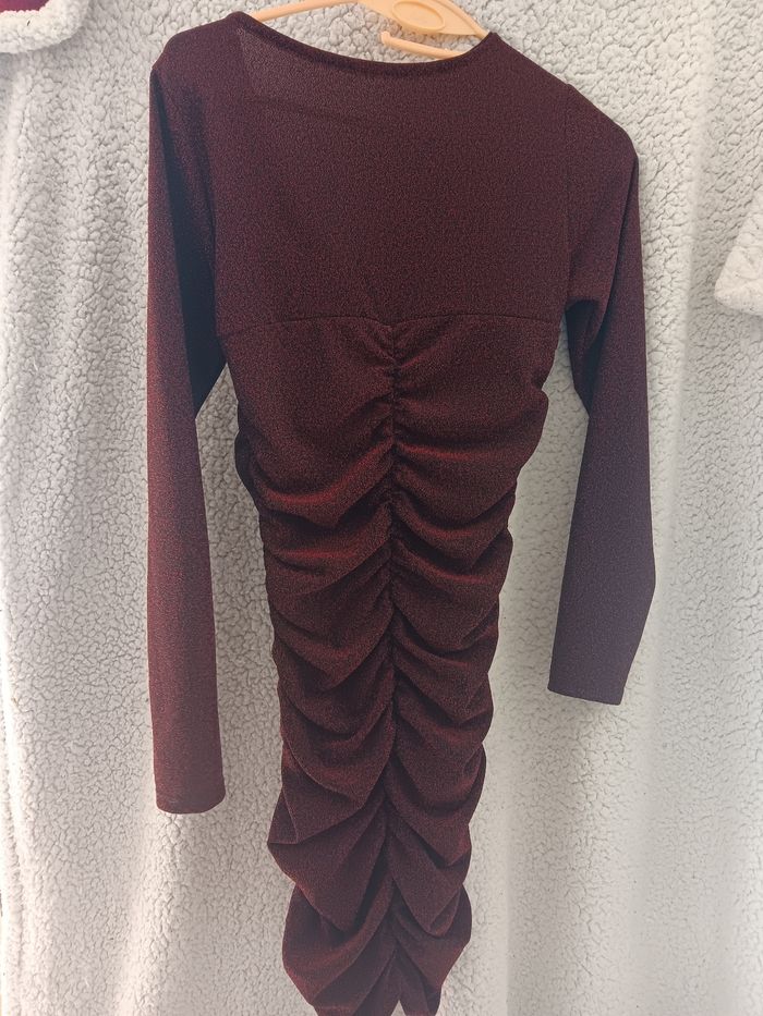 Robe courte à manches longues Idéal pour soirée habillée Bordeaux à paillettes Taille S