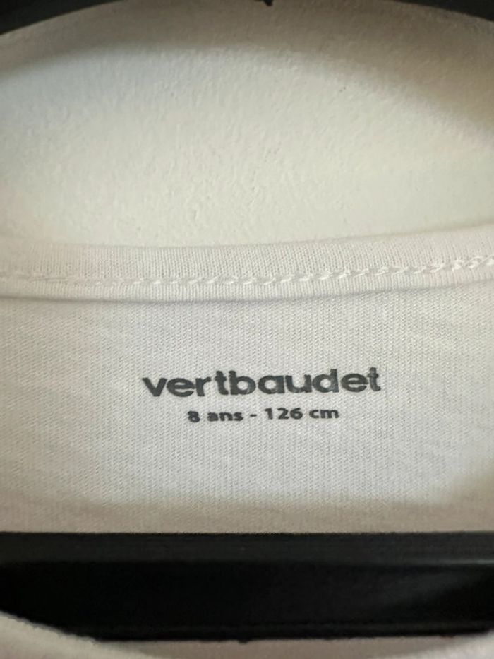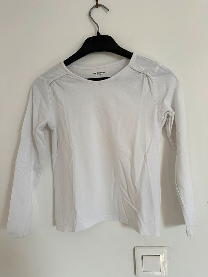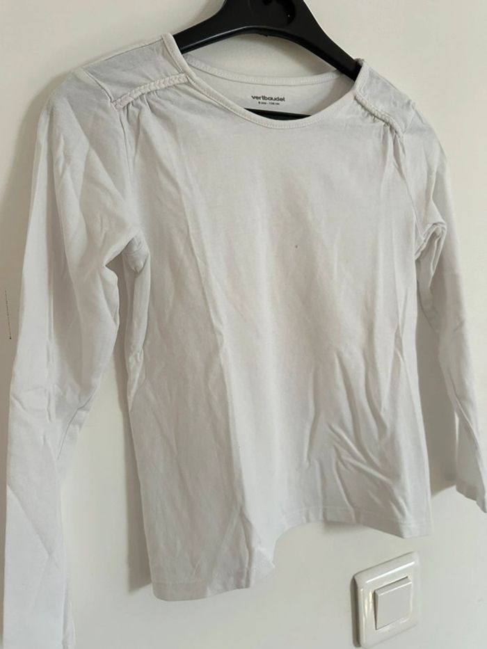t-shirt manches longues Vertbaudet 8 ans trace de stylo sur le devant comme cela apparaît sur la photo