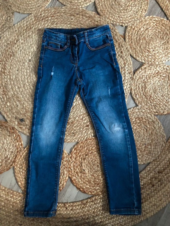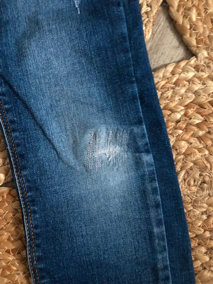 jeans Tape à l’œil 7 ans a été recousu à la jambe comme cela apparaît sur la photo