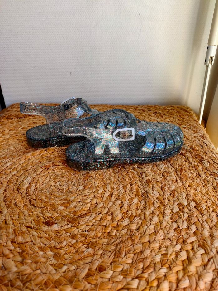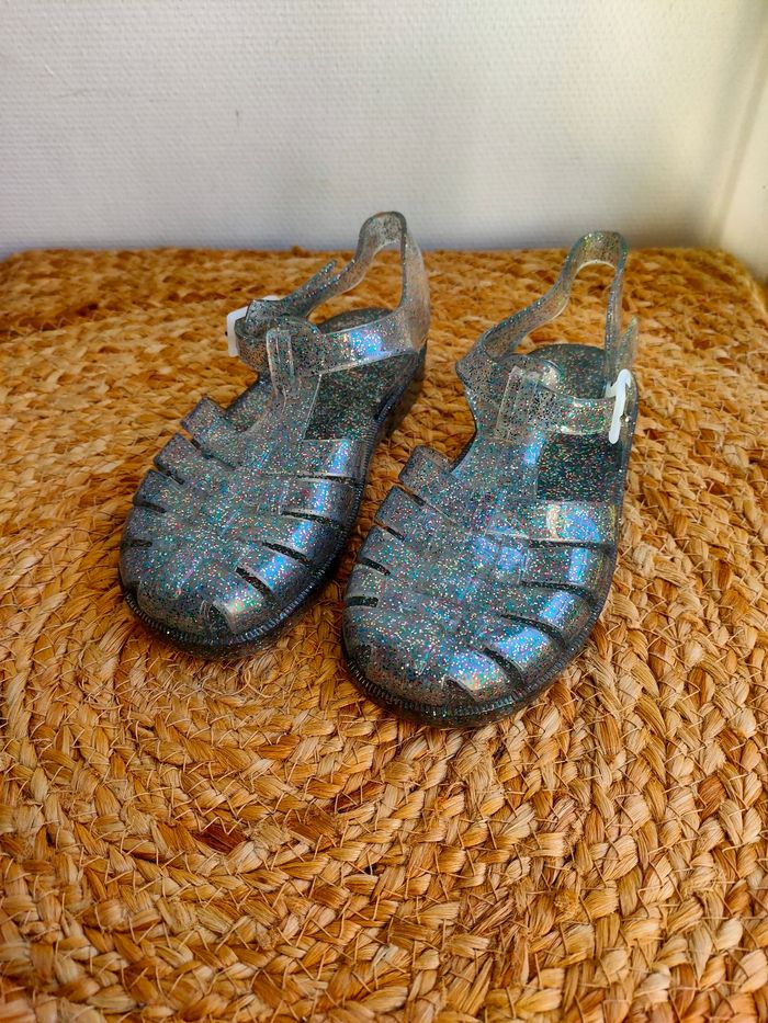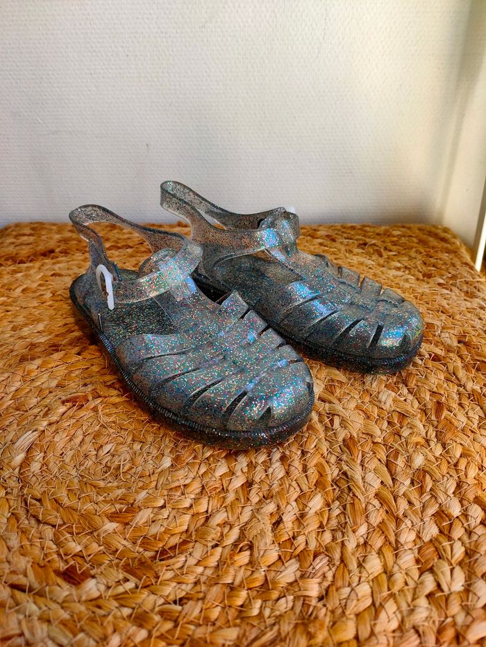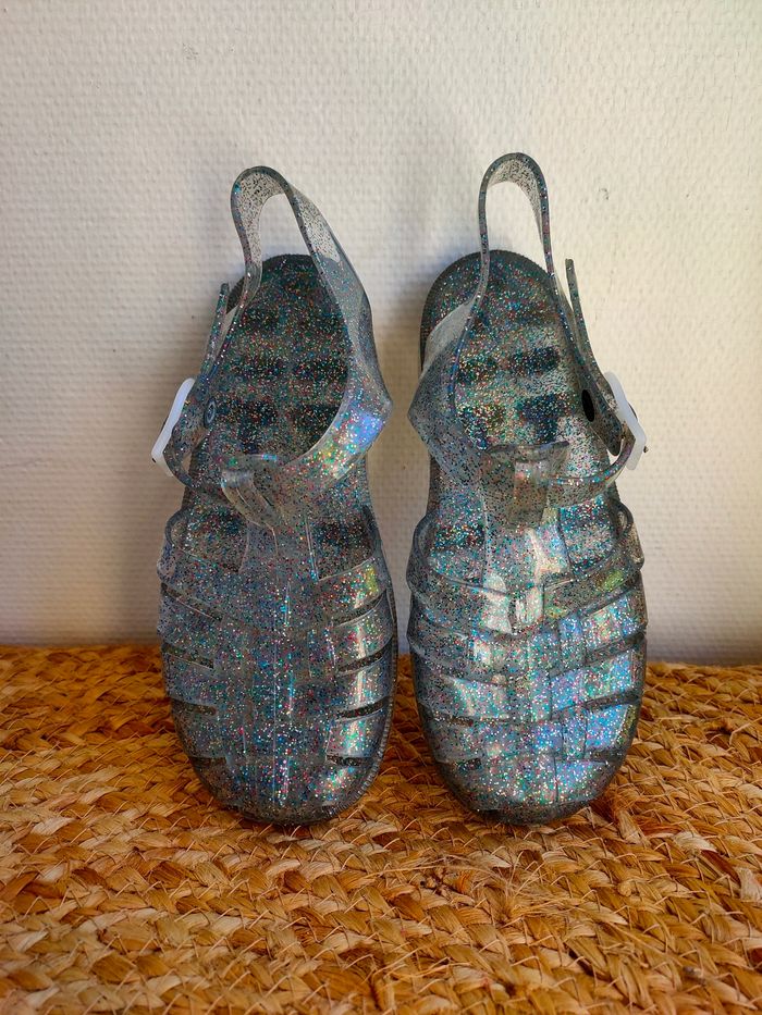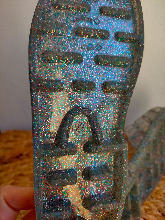 Chaussures de plage/ pêche a pied en plastique transparente a paillettes, succès garanti pour la pêche aux crevettes 😉. Taille 29. Elles sont neuves, n'ont jamais été porté Prix ferme, PAS DE NÉGO !!!