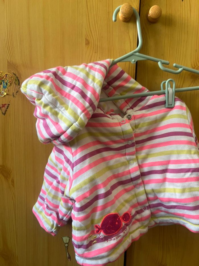 Ensemble, veste et pantalon de plusieurs couleurs avec des dessins de poisson en 9 mois. #Misterlica_9mois