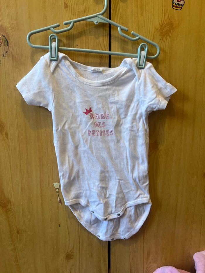 Lot de deux bodys manches courtes en 24 mois, un rose et un blanc avec écrit, « reine des bêtises ». ⚠️Possibilité de prendre 2 bodys pour 1€.⚠️ #Misterlica_24mois