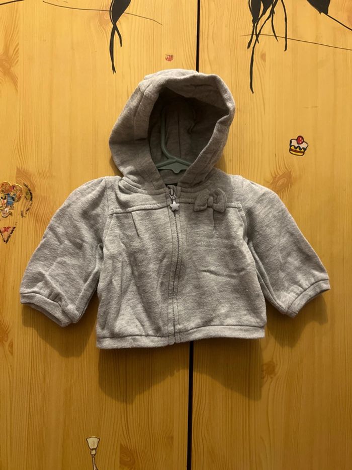 Ensemble de jogging gris avec petit noeud à la taille sur le pantalon et sur la veste, en 3 mois. #Misterlica_3mois