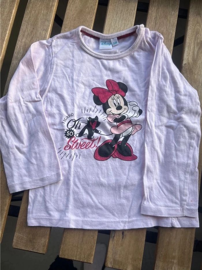 T-shirt manches longues, rose pale, Minnie. Il y a 2 petites taches dessus (voir photos). #misterlica_24mois