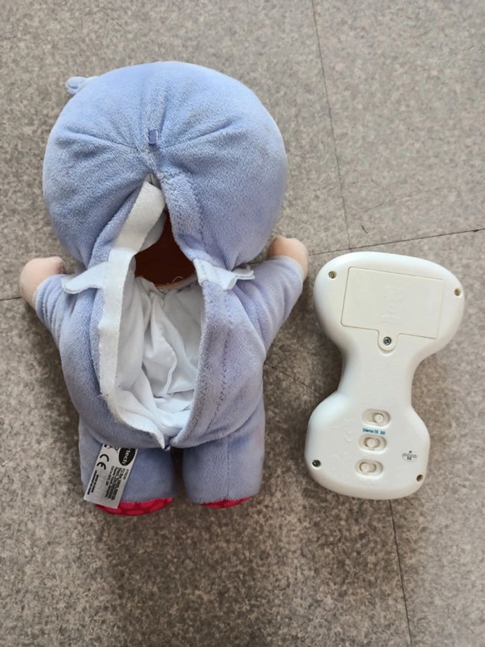 LOUISON, MON LUMI POUPON Lumière, musique parle. La lumière varie selon le rythme des mélodies. Il y a une minuterie pour écouter la musique et on peu régler la lumière éteindre ou allumé avec la musique.