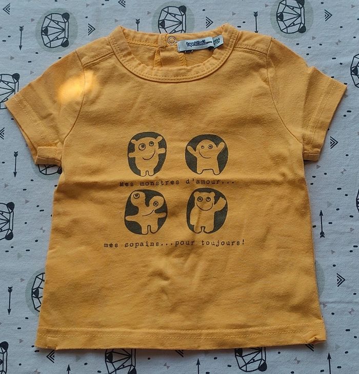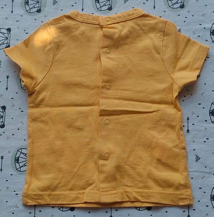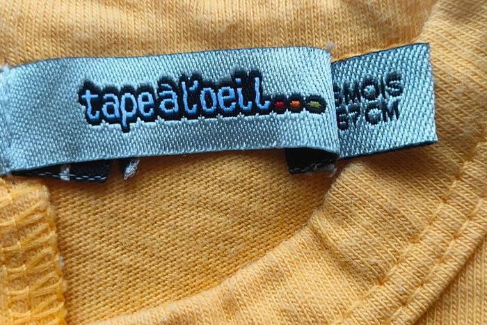 Ensemble garçon, tee-shirt jaune avec dessin et écriture et une salopette bleu possibilité de régler les bretelles en très bon état de la marque Tape à l'oeil pour garçon taille 6 mois. #neezia33240ensemblegarçon6mois
