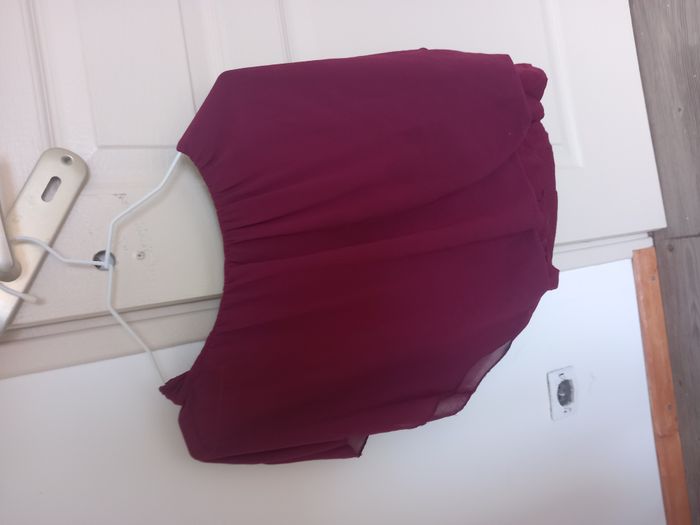 T-shirt femme ample / voilage bordeau taille L - photo numéro 2