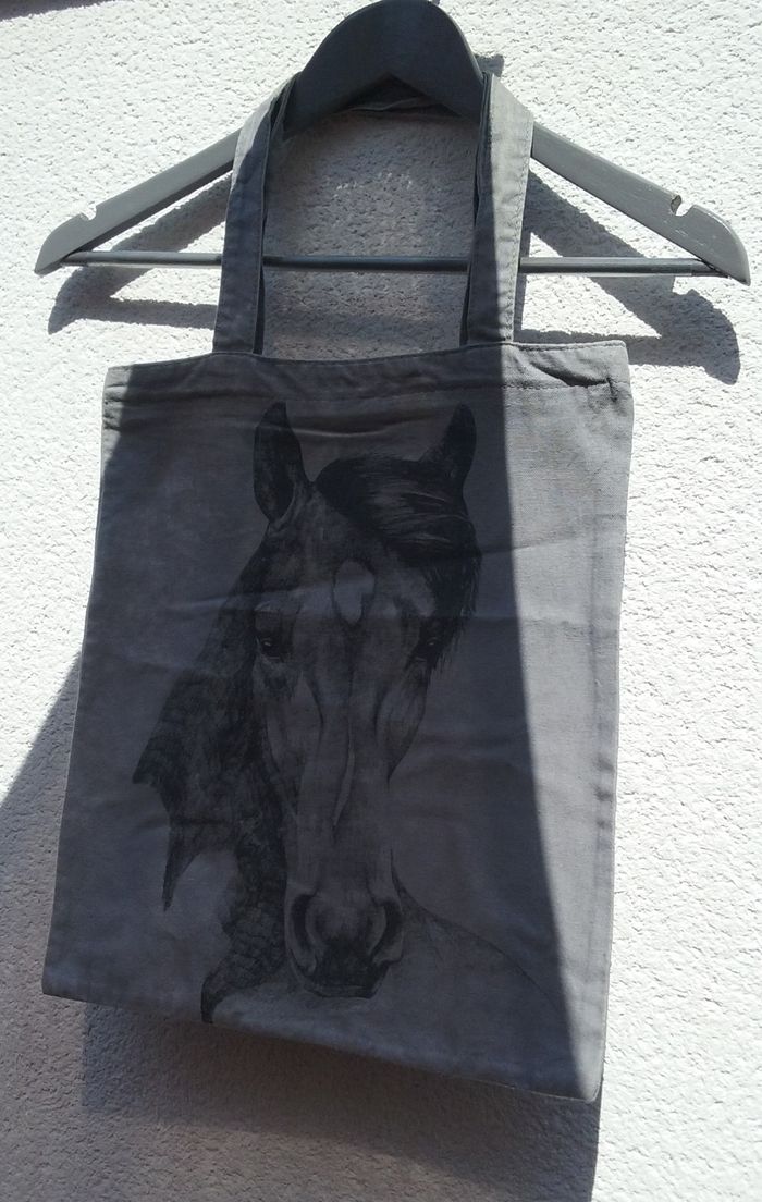 Sac de 37x32cm, 100% coton, coloris gris clair.