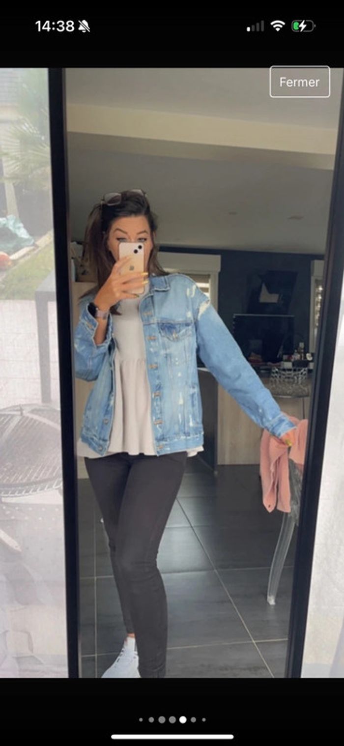 Veste en jeans over size déchirée - photo numéro 6